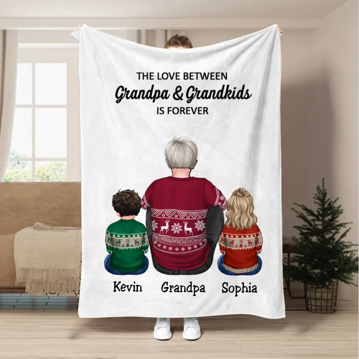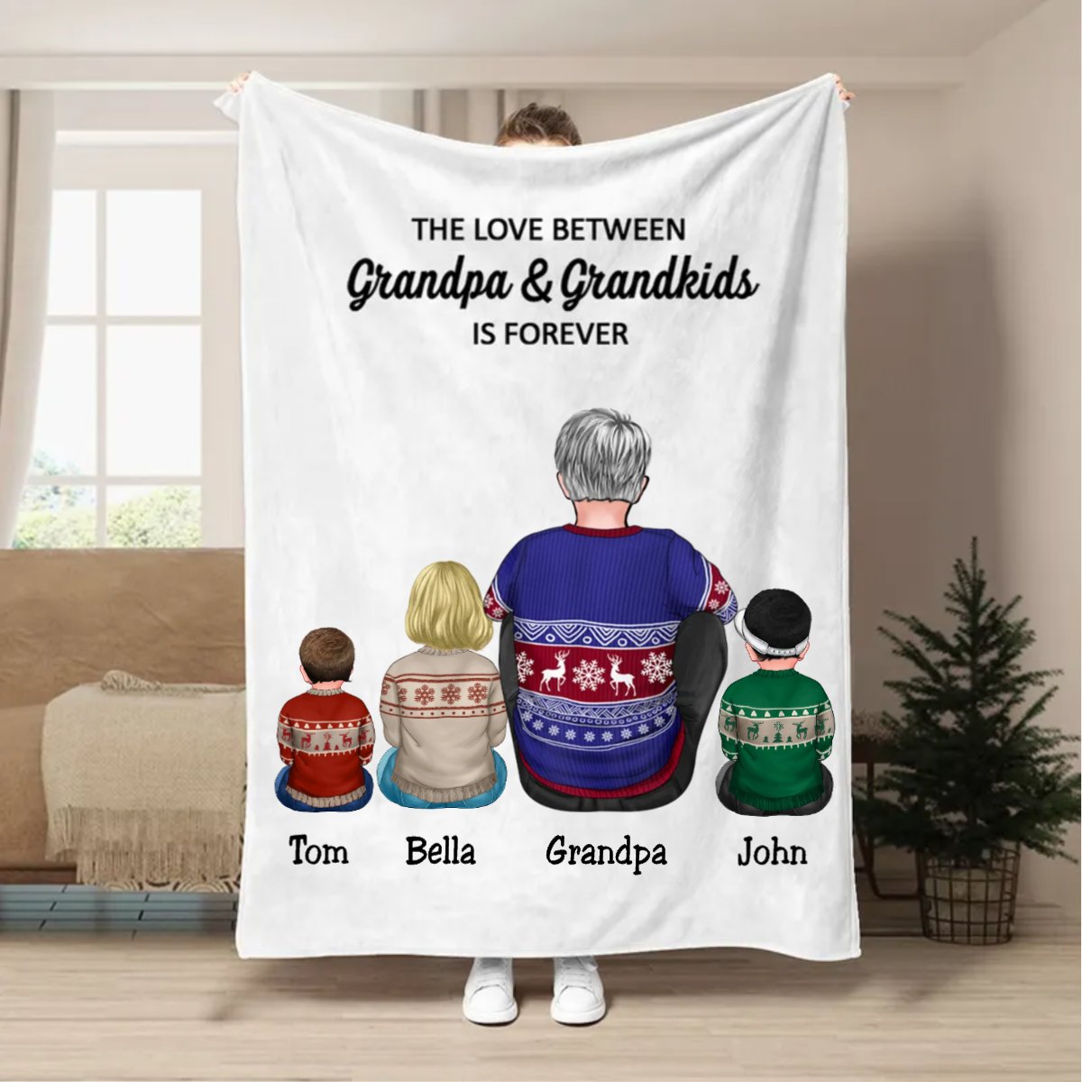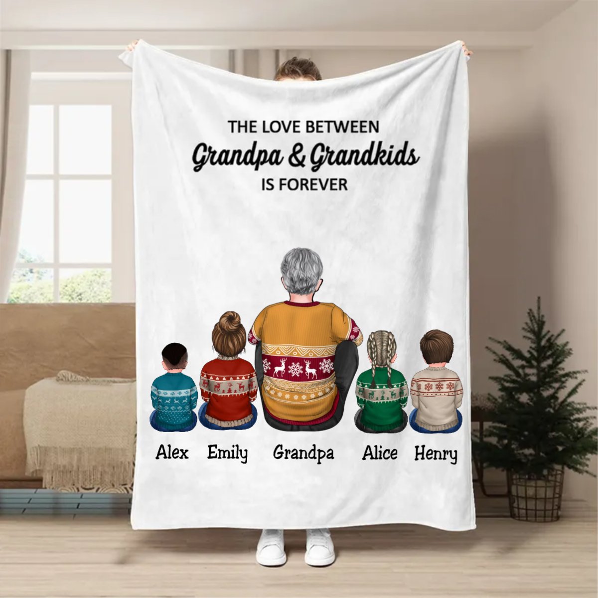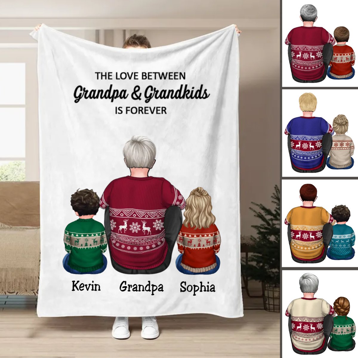 Family - The Love Between Grandpa & Grandkids Is Forever - Personalized Blanket