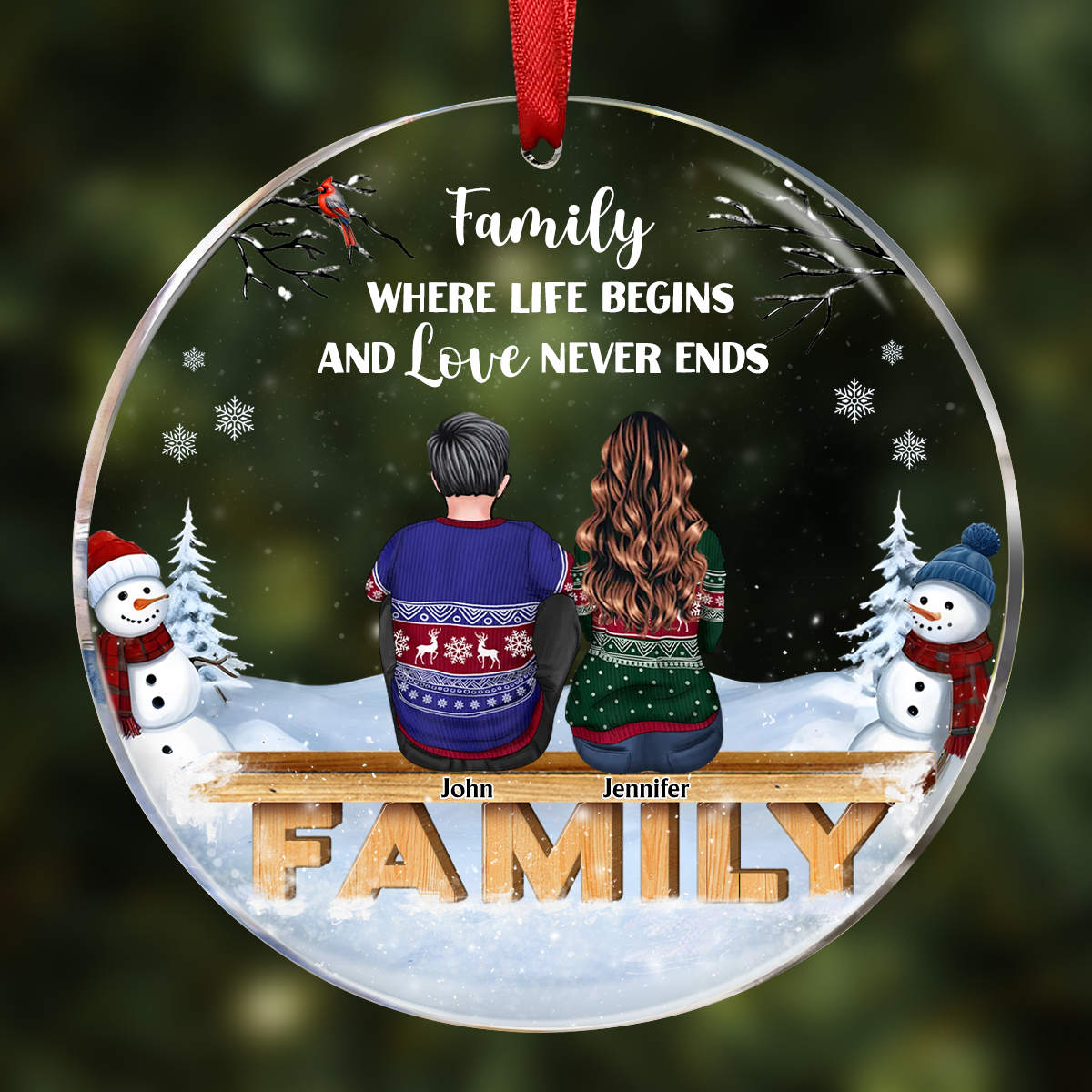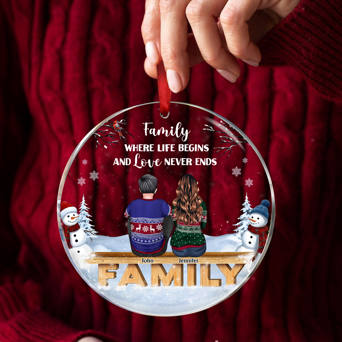 Family Where Begins And Love Never Ends Memorial - Personalized Circle Acrylic Ornament