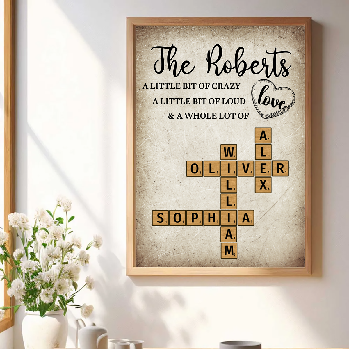 Family Whole Lot Of Love Heart Crossword Art Puzzle Create A Moment Treasured Forever Personalized Poster