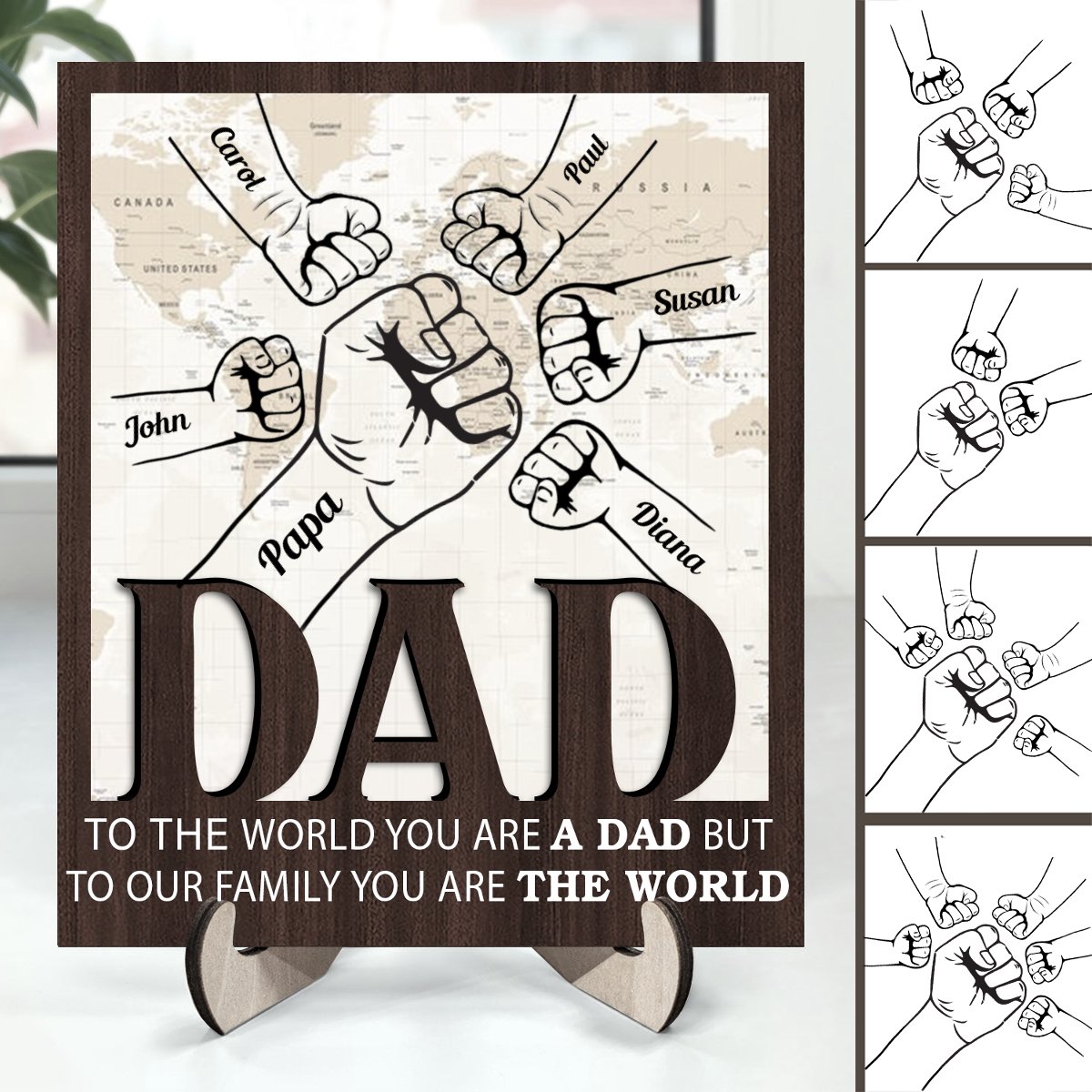 Father - To The World You Are A Dad But To Our Family You Are The World - Personalized 2-Layered Wooden Plaque With Stand