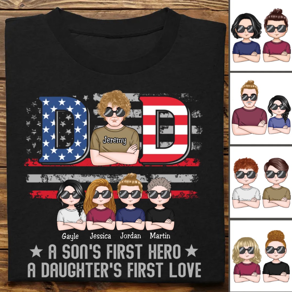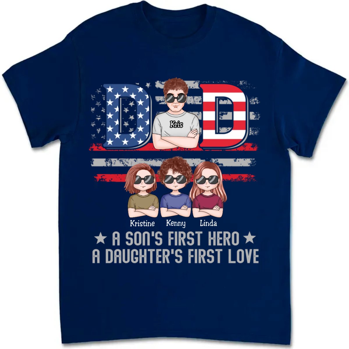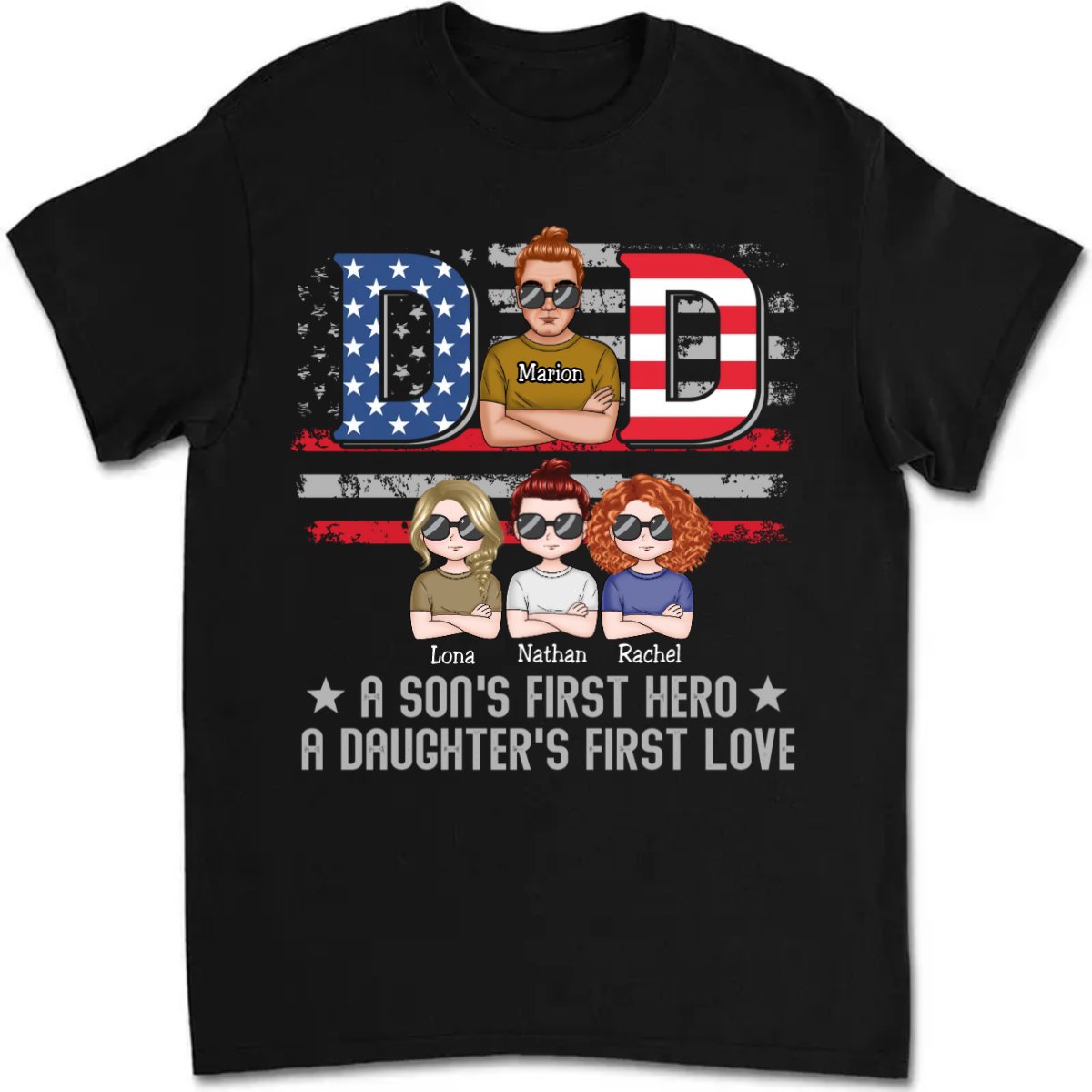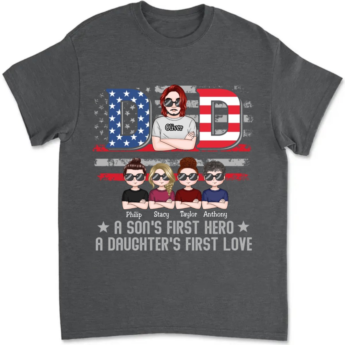 Father's Day - Dad, A Son's First Hero & A Daughter's First Love - Personalized T-Shirt (TT)