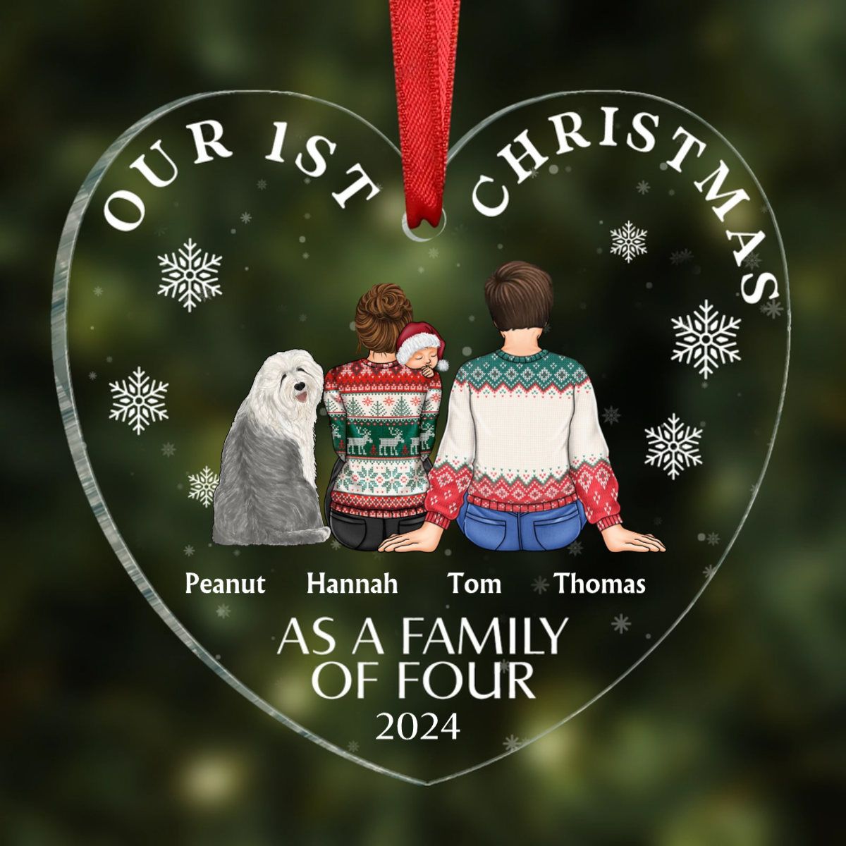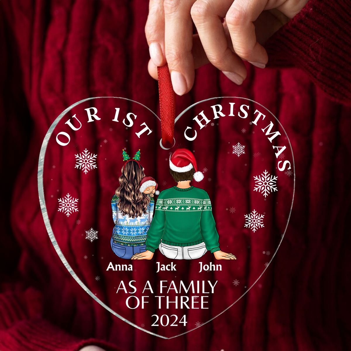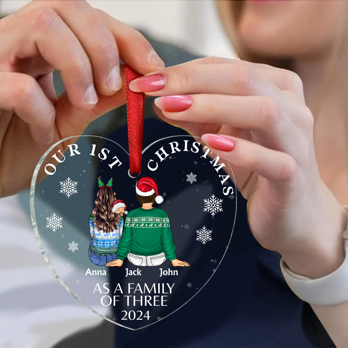 First Christmas As A Family Of Three New Parents - Personalized Heart Shaped Acrylic Ornament