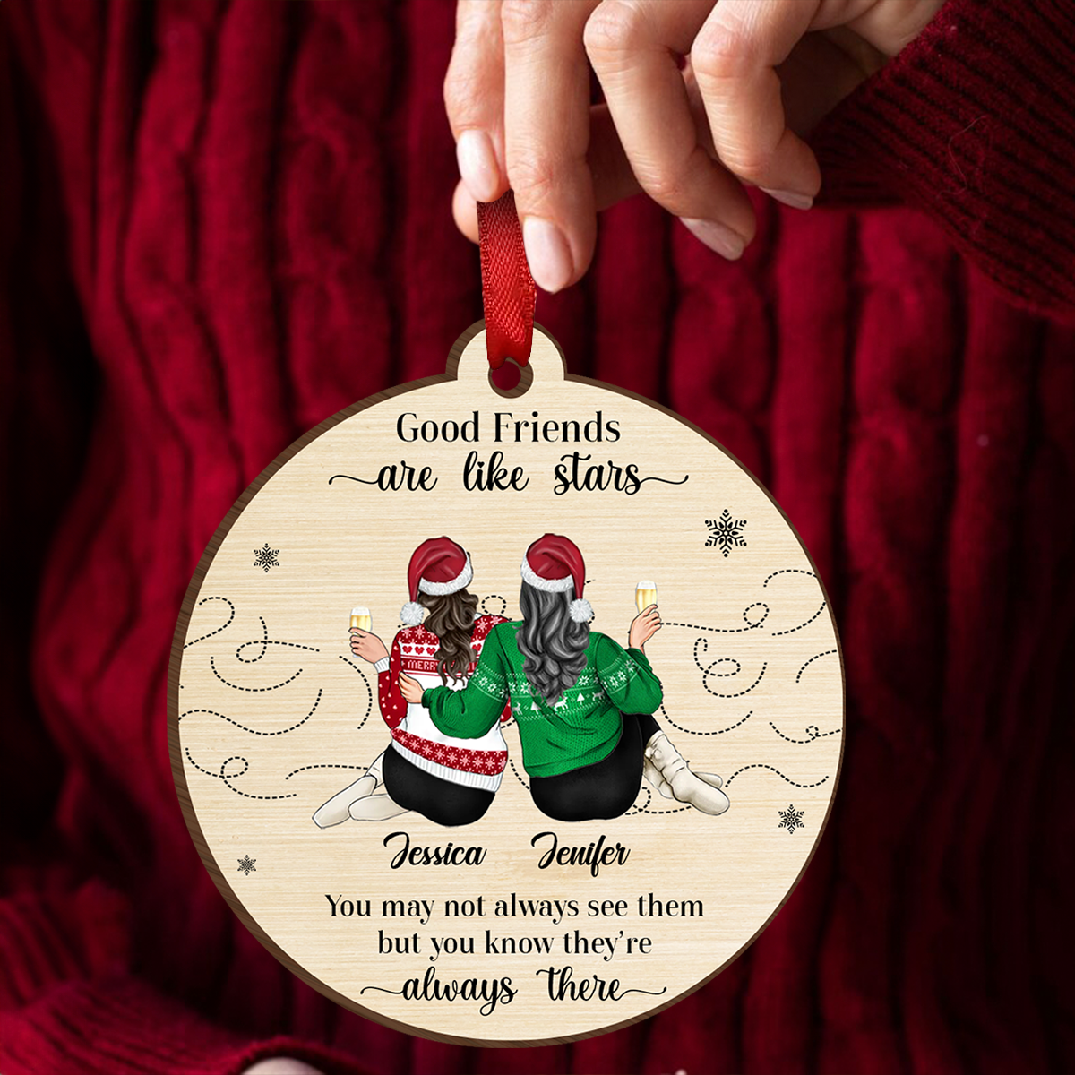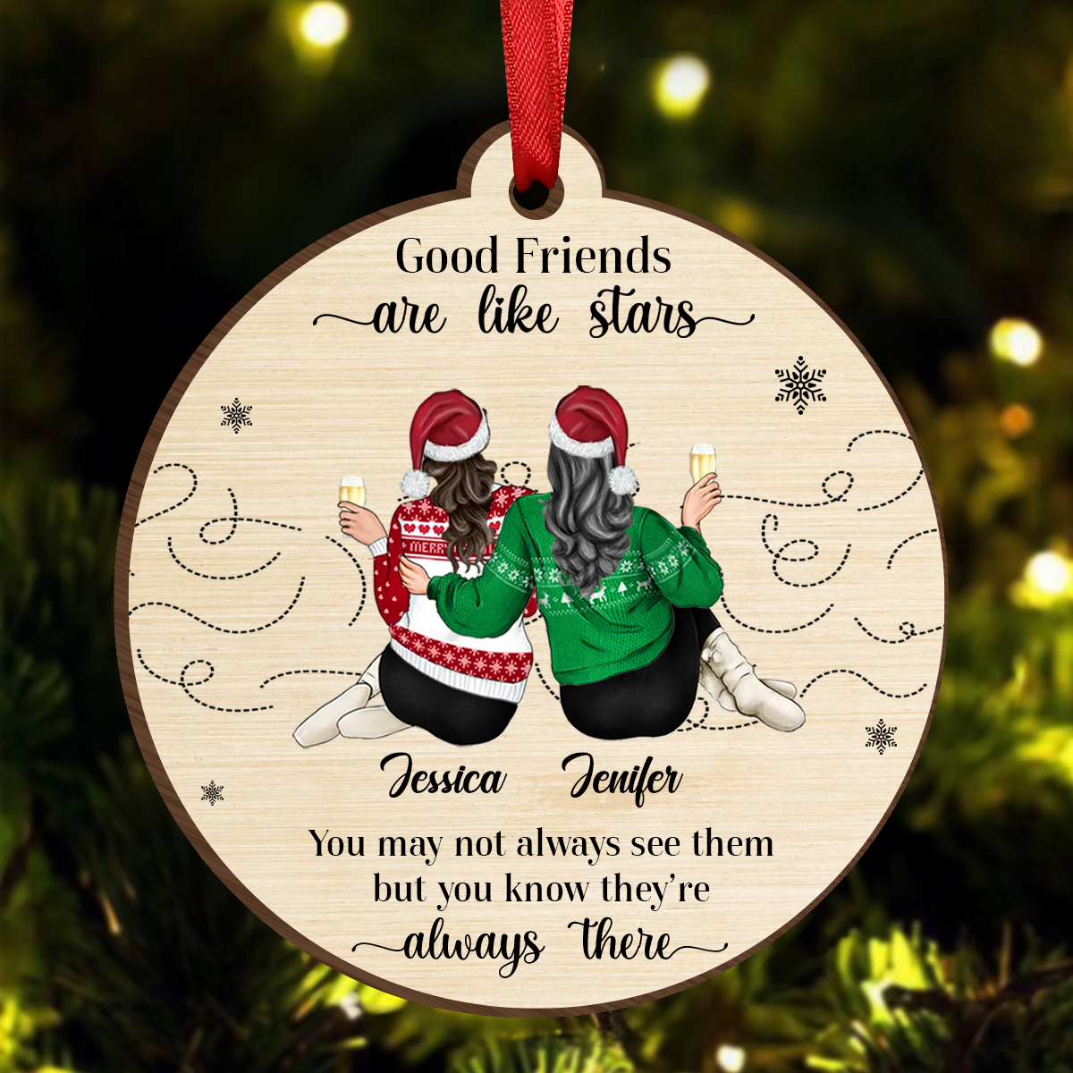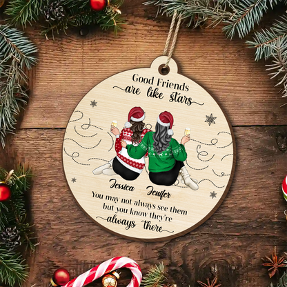 Friends Are Like Stars - Personalized Custom Shaped Wooden Ornament