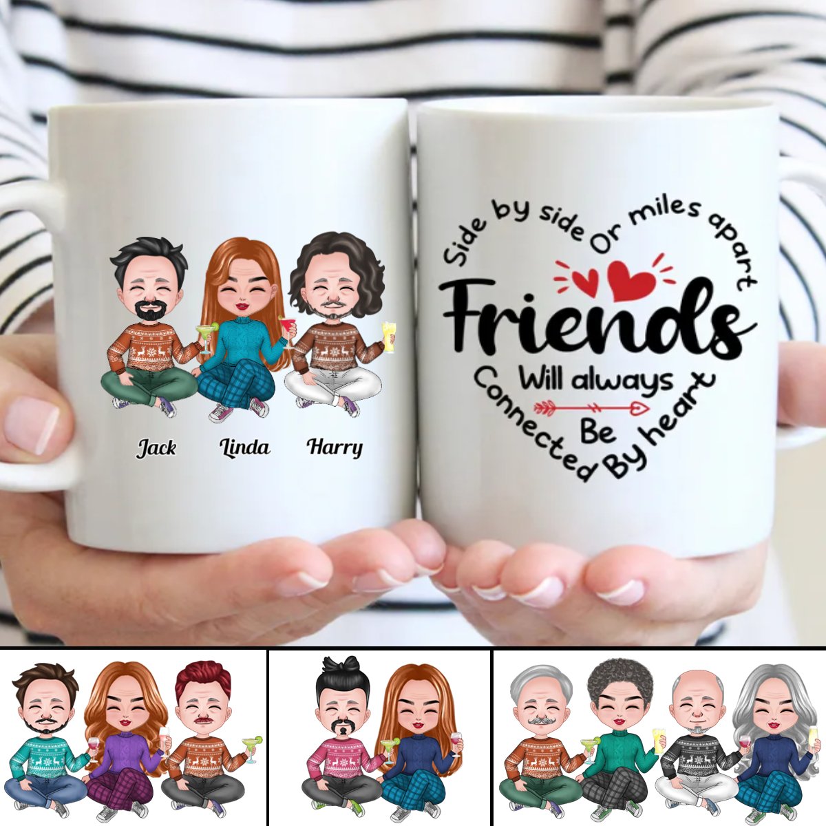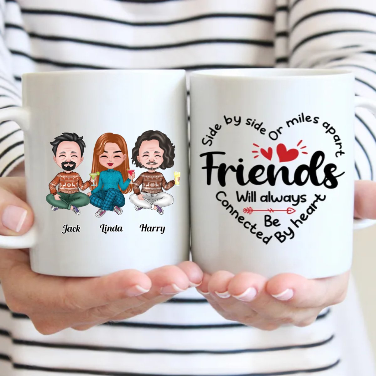 Friends - Side By Side Or Miles Apart Friends Will Always Be Connected By Heart - Personalized Mug