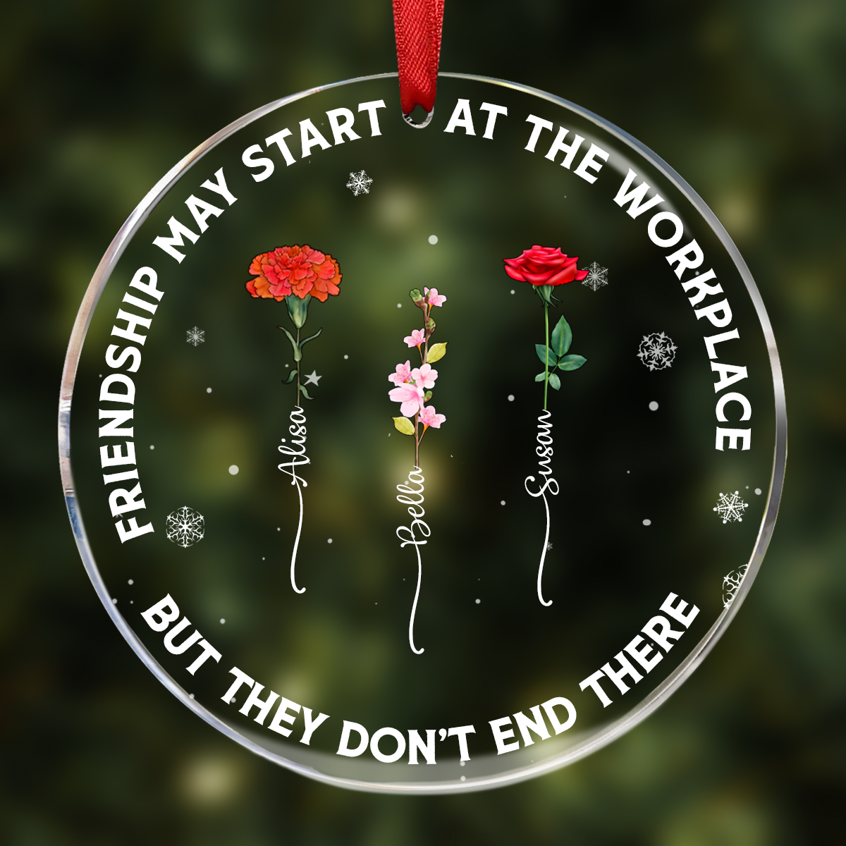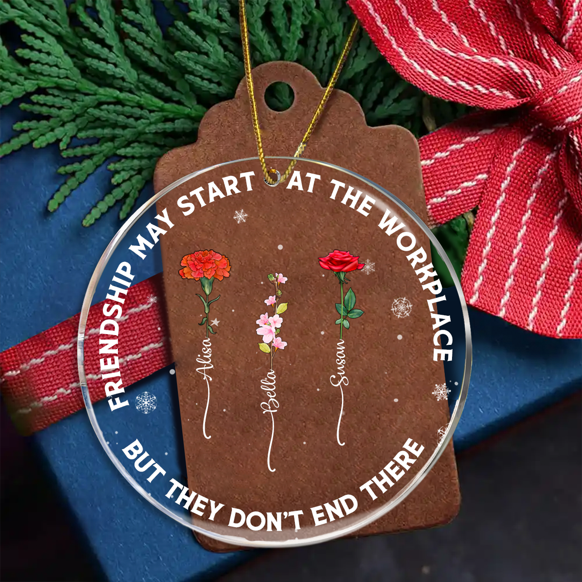 Friendships May Start At The Workplace Birth Flower - Personalized Circle Acrylic Ornament