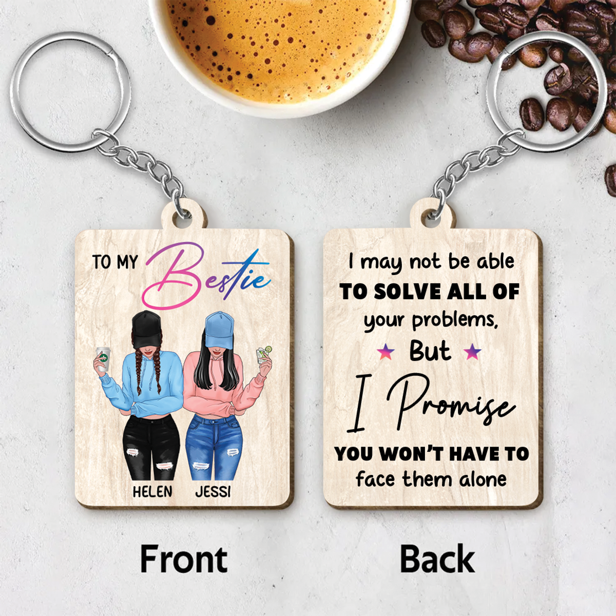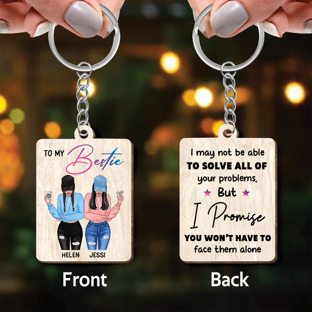 Front View Besties To My Bestie Personalized Wooden Keychain