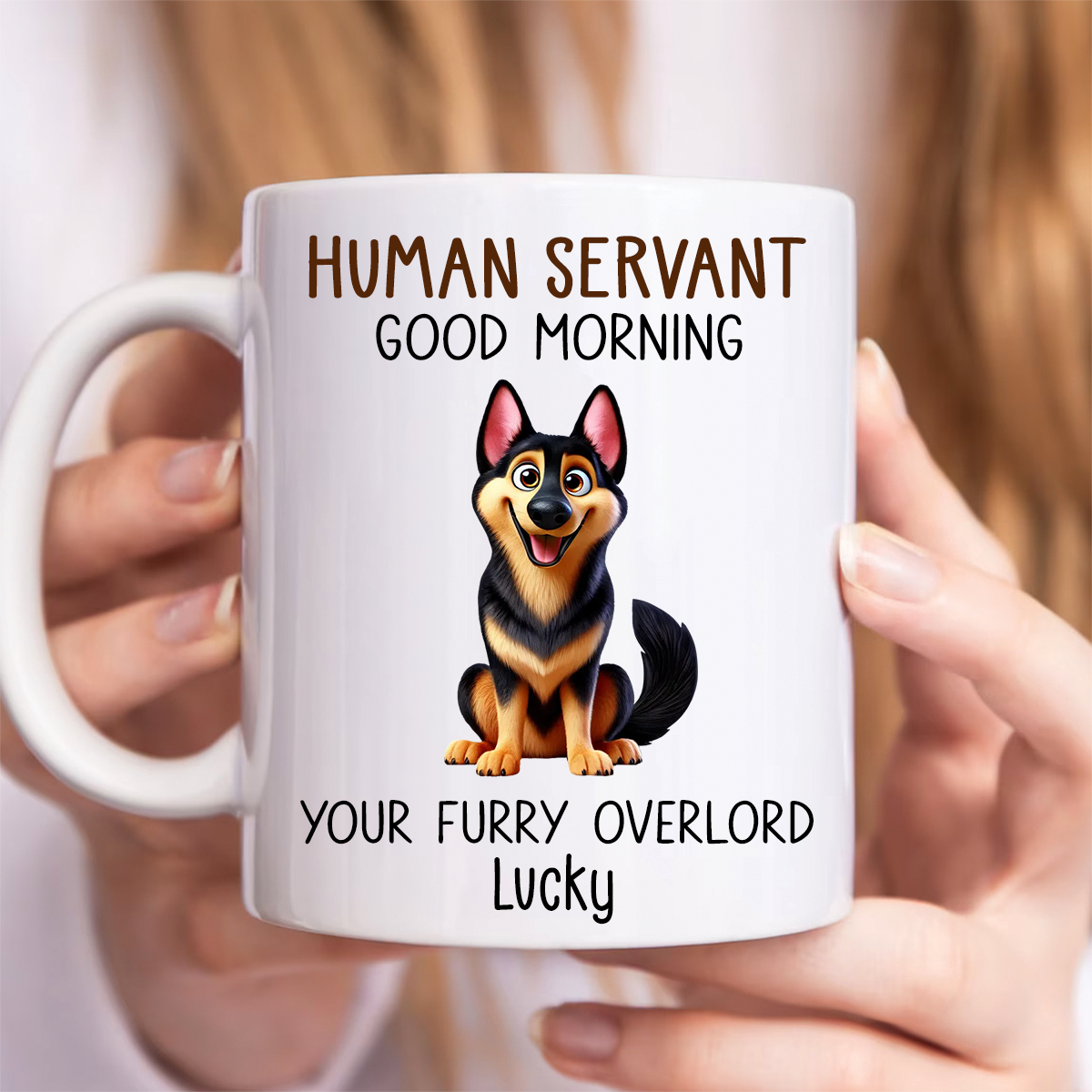 Funny Cartoon Dogs Good Morning Dog Human Servant Personalized Mug, Gift For Dog Lovers
