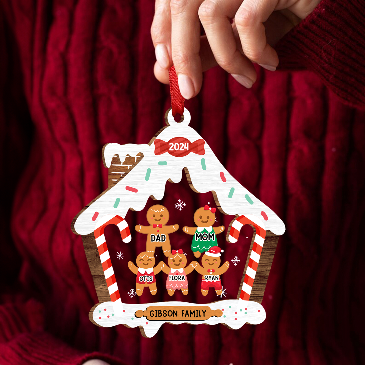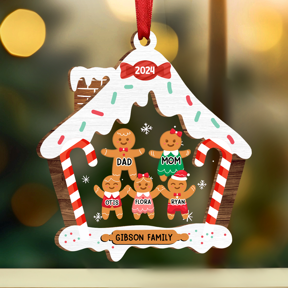 Gingerbread House Family With Pets Christmas - Personalized Acrylic Ornament