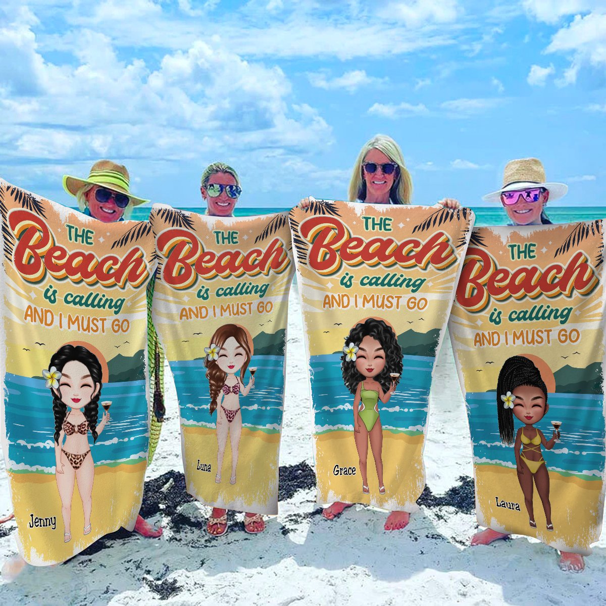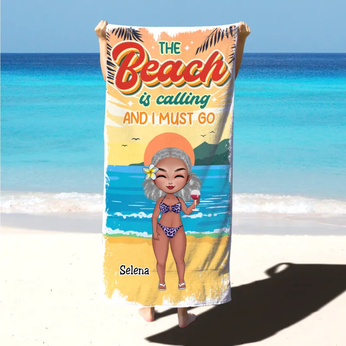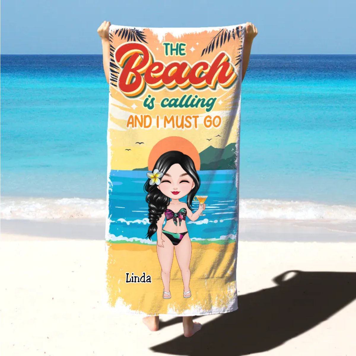 Girls - The Beach Is Calling And I Must Go - Personalized Beach Towel