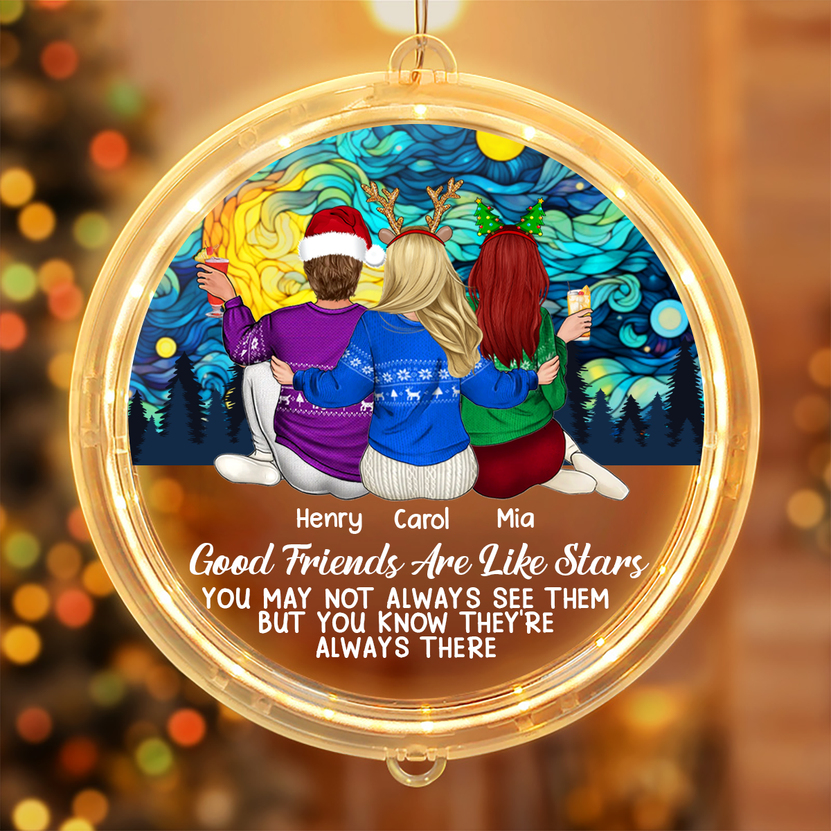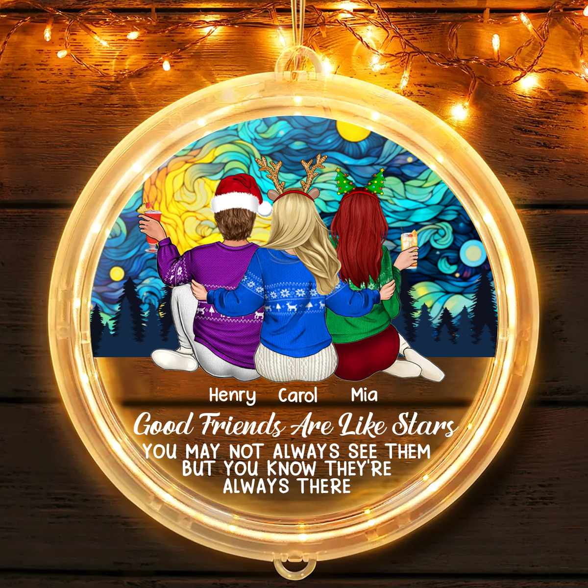 Good Friends Are Like Stars - Personalized LED Pendant Light