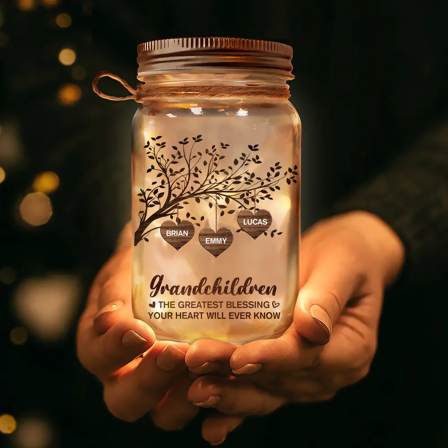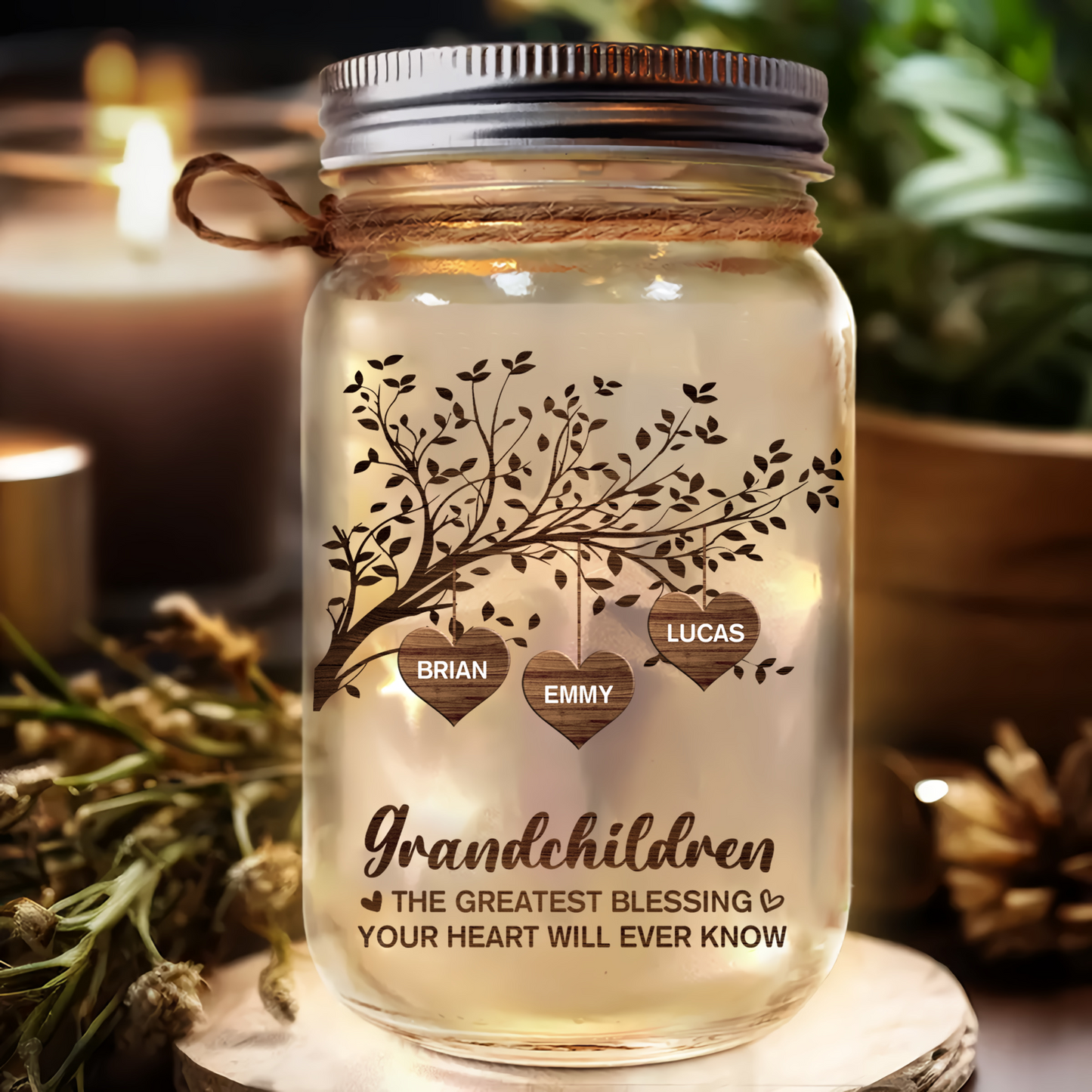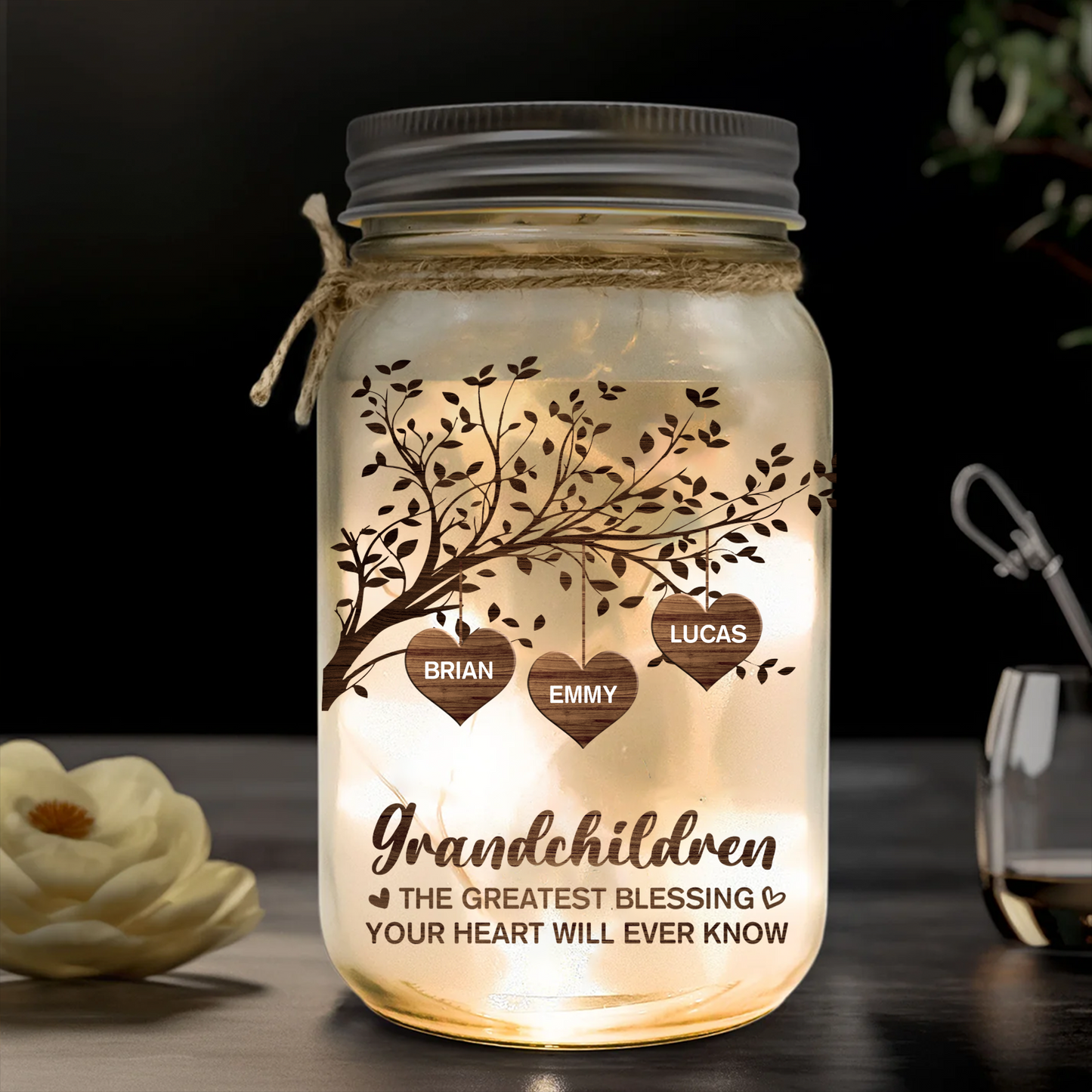 Grandchildren The Greatest Blessing - Personalized Mason Jar Light
