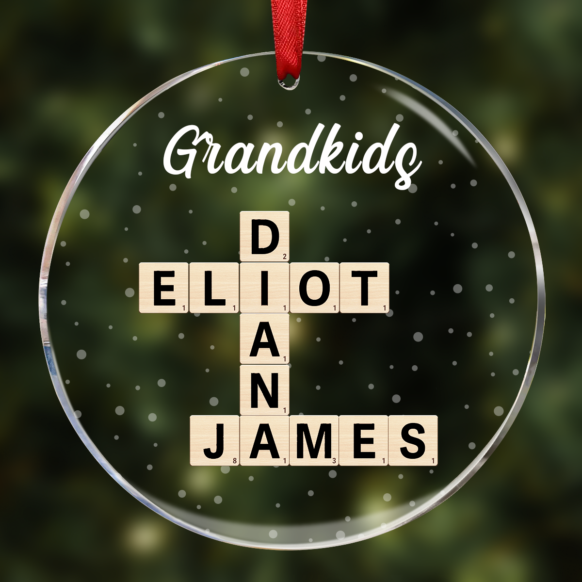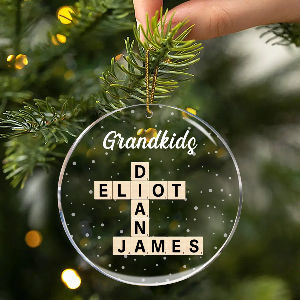 Grandkids Crossword Puzzle Art Personalized Ornament, Christmas Gift For Grandma, Gift For Mom