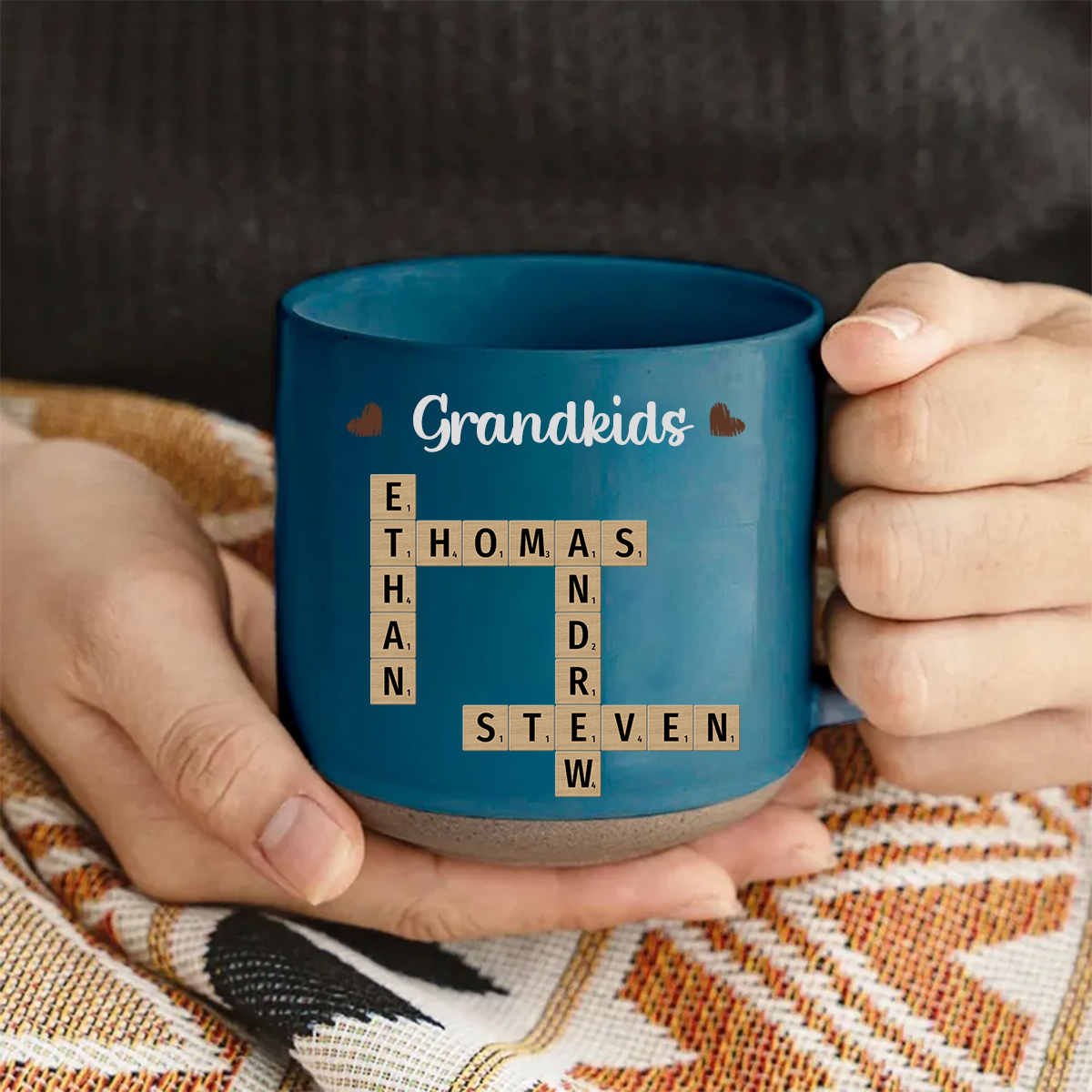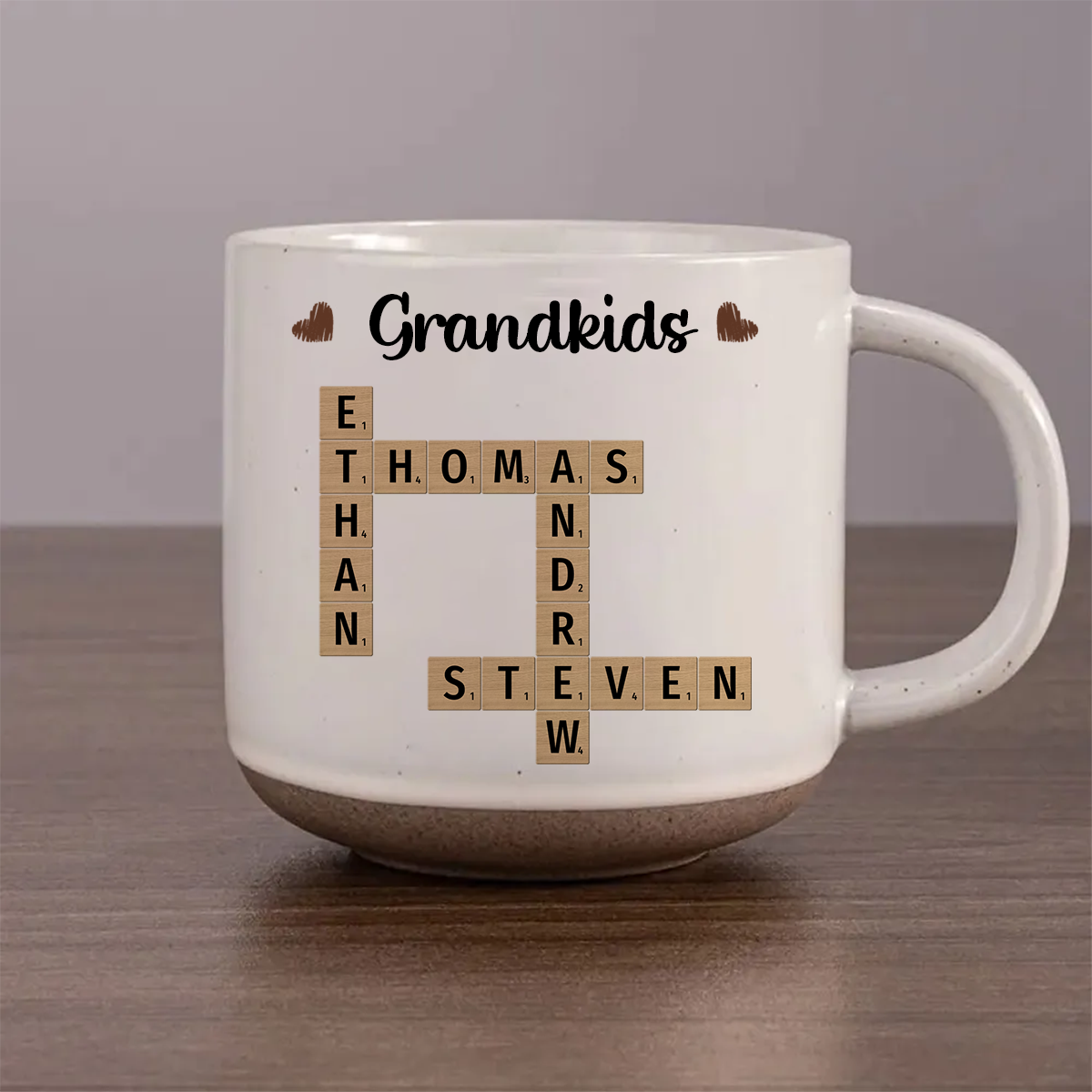 Grandkids Crossword Puzzle Art Personalized Pottery Mug, Christmas Gift For Grandma, Gift For Mom