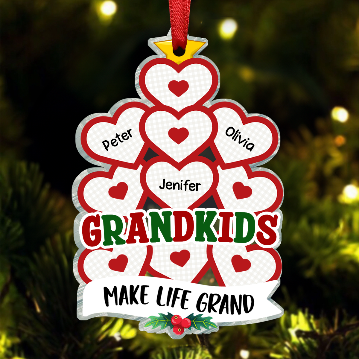Grandkids Make Life Grand Hearts - Personalized Custom Shaped Acrylic Ornament