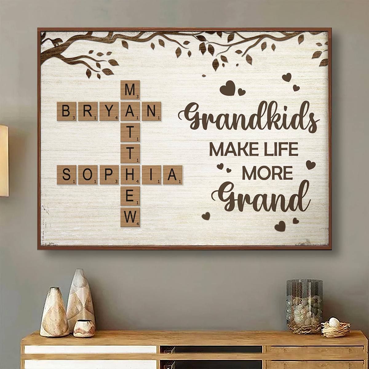Grandkids Make Life More Grand Crossword Puzzle Art Personalized Poster, Christmas Gift for Grandma