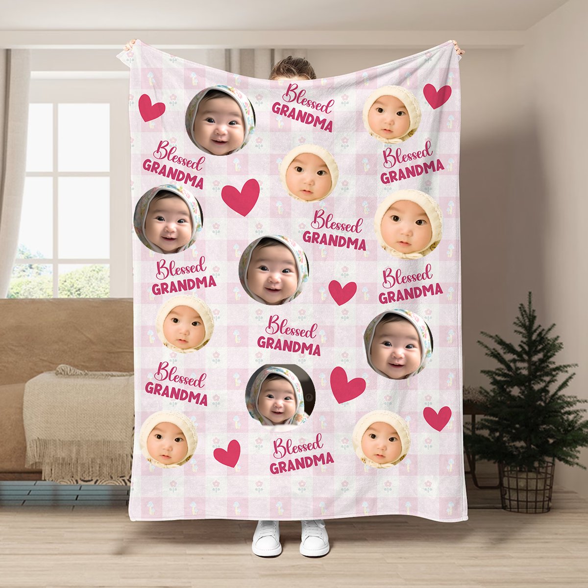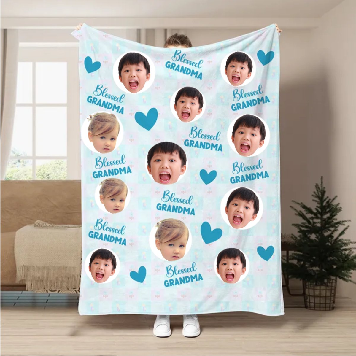 Grandma - Custom Photo Blessed Grandma - Personalized Blanket
