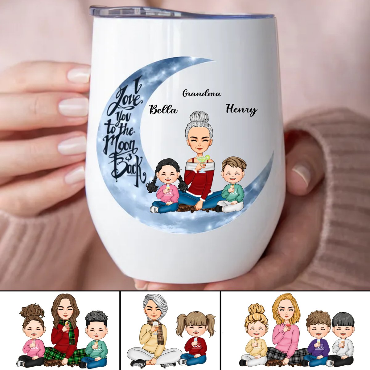 Grandma - I Love You To The Moon And Back - Personalized Wine Tumbler