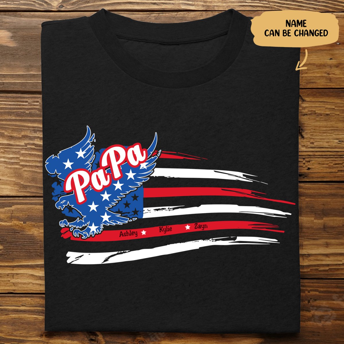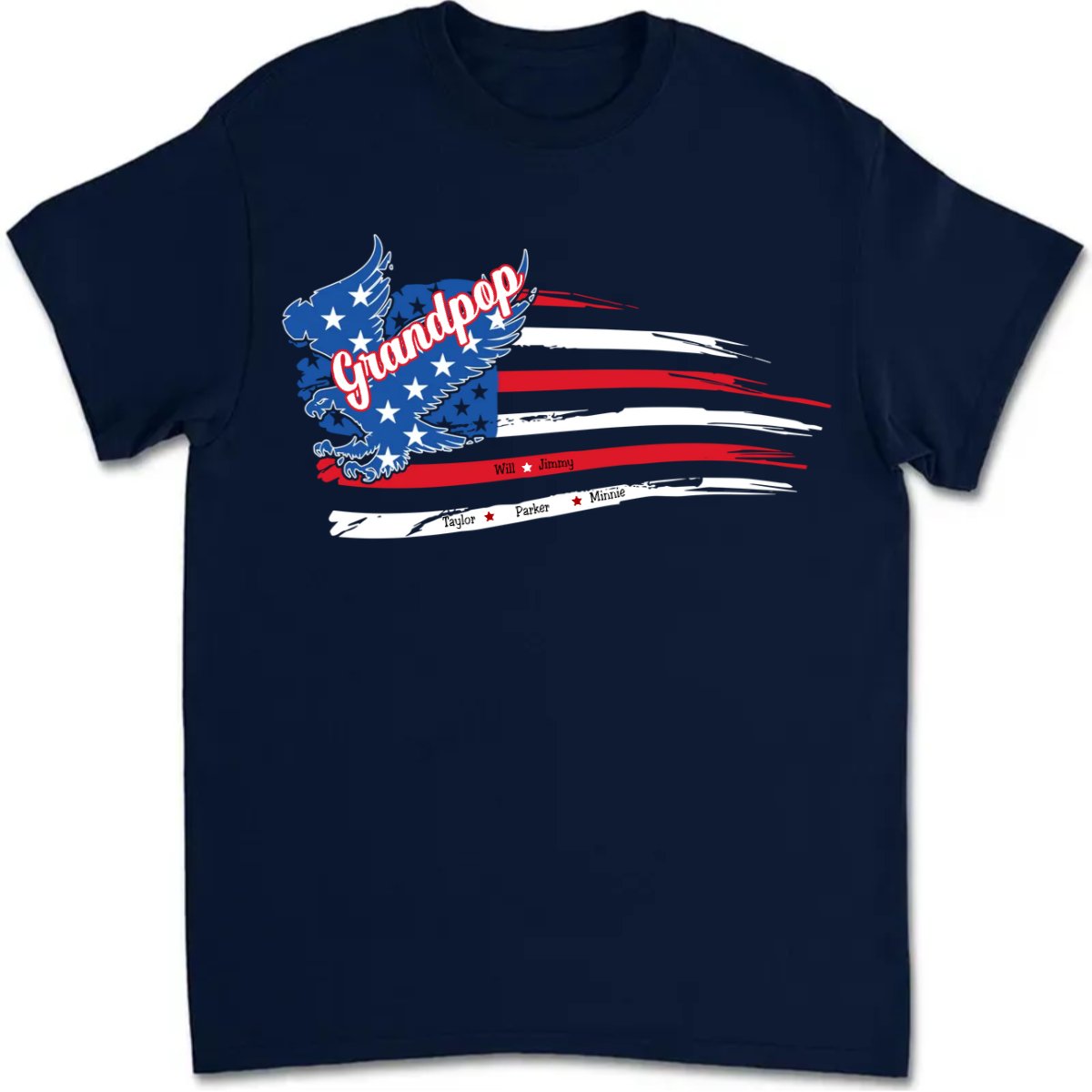 Grandpa - Papa with Grandkids Names 4th Of July - Personalized T-Shirt