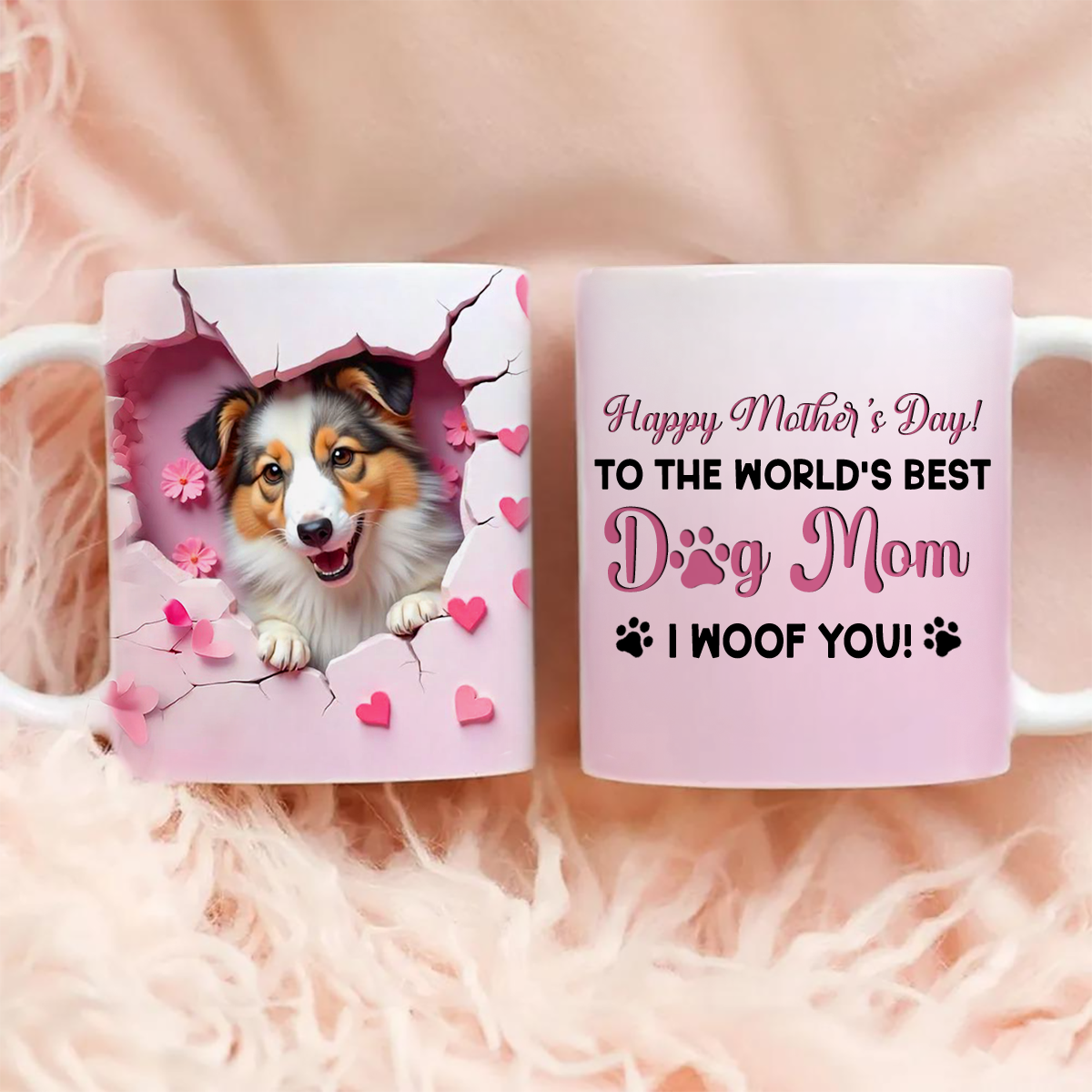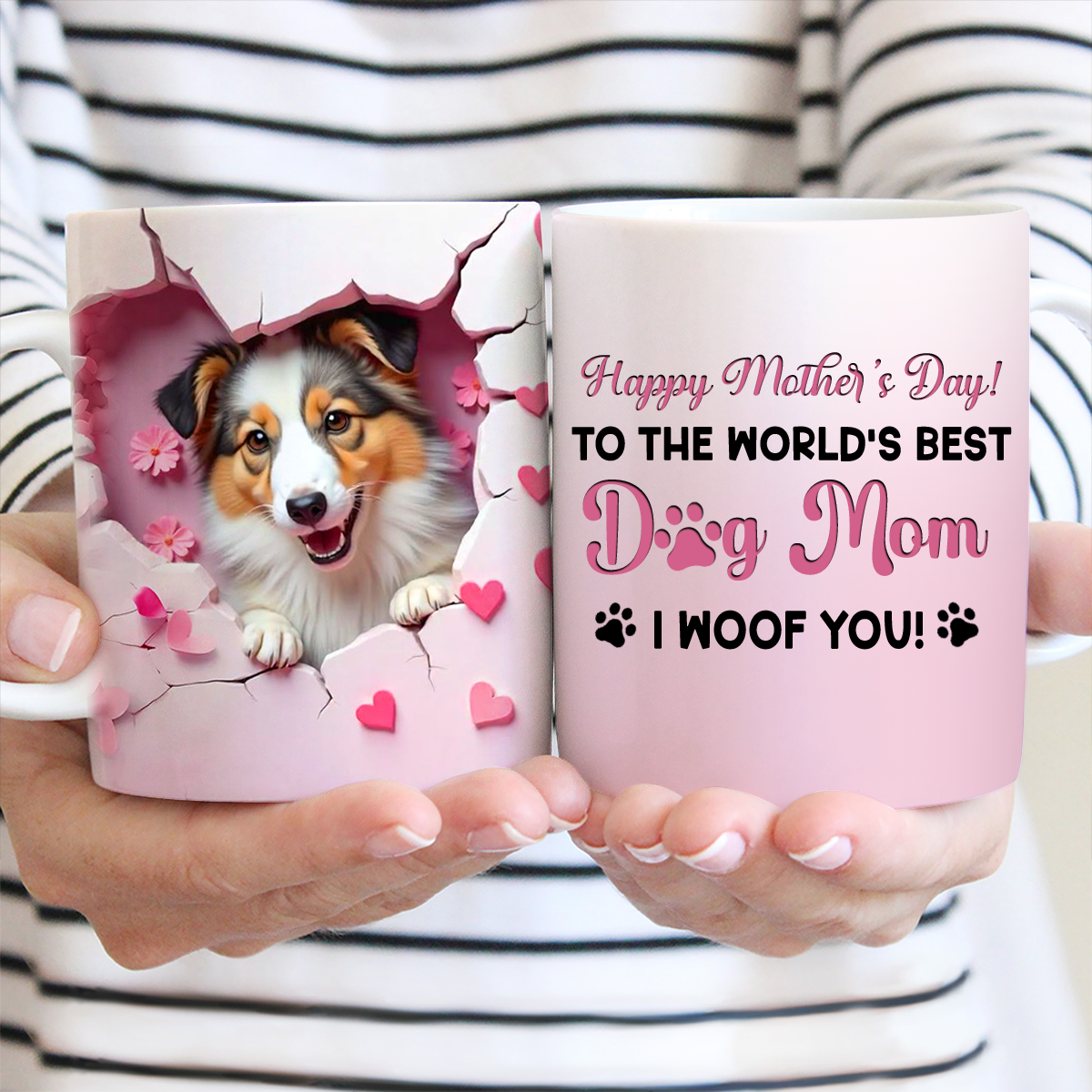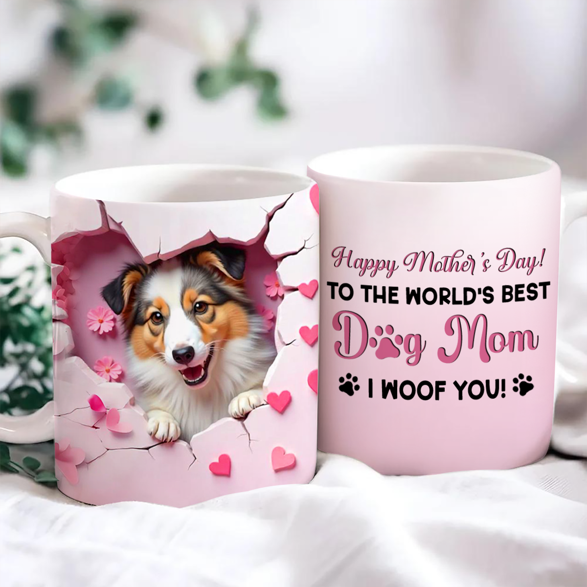 Happy Mother's Day Dog Mom 3D Effect Personalized Mug, Mother's Day, Birthday Gift for Dog Moms