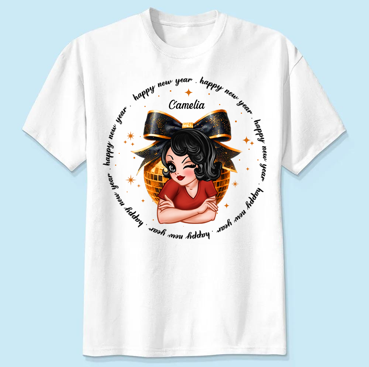 Happy New Year 2025 Black And Gold Glitter Disco Ball Personalized Shirt, New Year Gift For Yourself