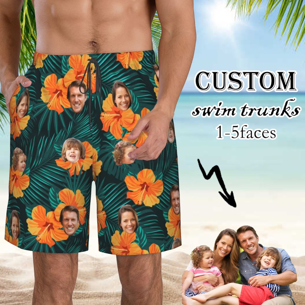 Hawaii - Face Photos Beach Board Short For Men - Personalized Short