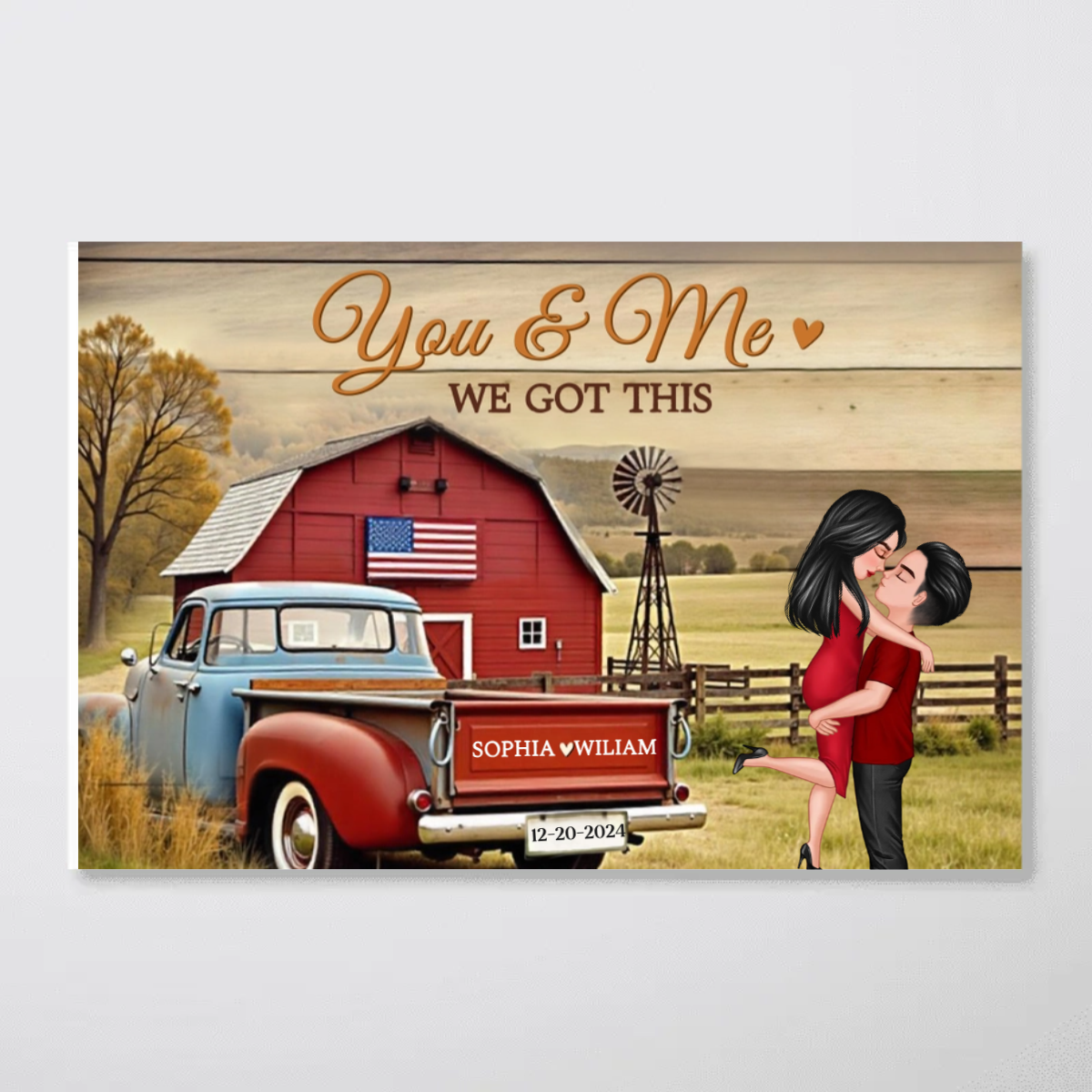 Hero Couple Vintage Truck Farmhouse Personalized Poster, Anniversary Valentine's Day Gift For Him, Her, Husband, Wife