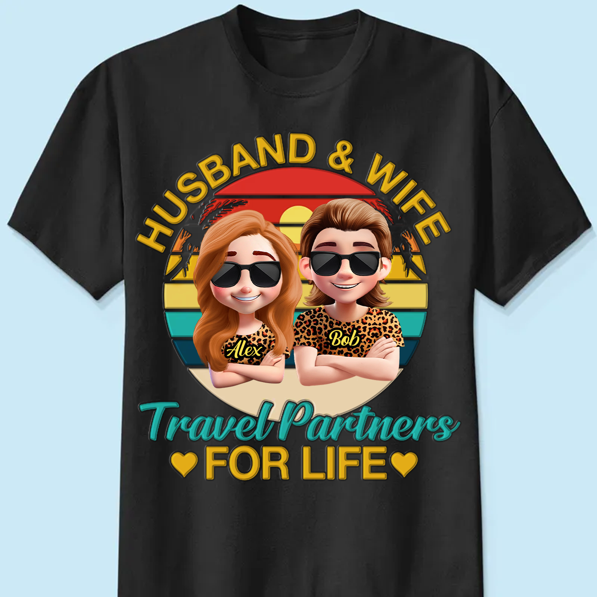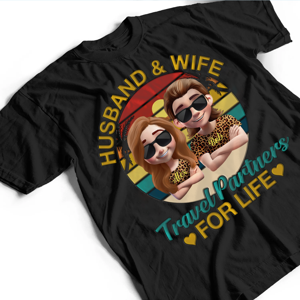 Husband And Wife Travel Partners For Life Traveling Couple - Personalized T Shirt