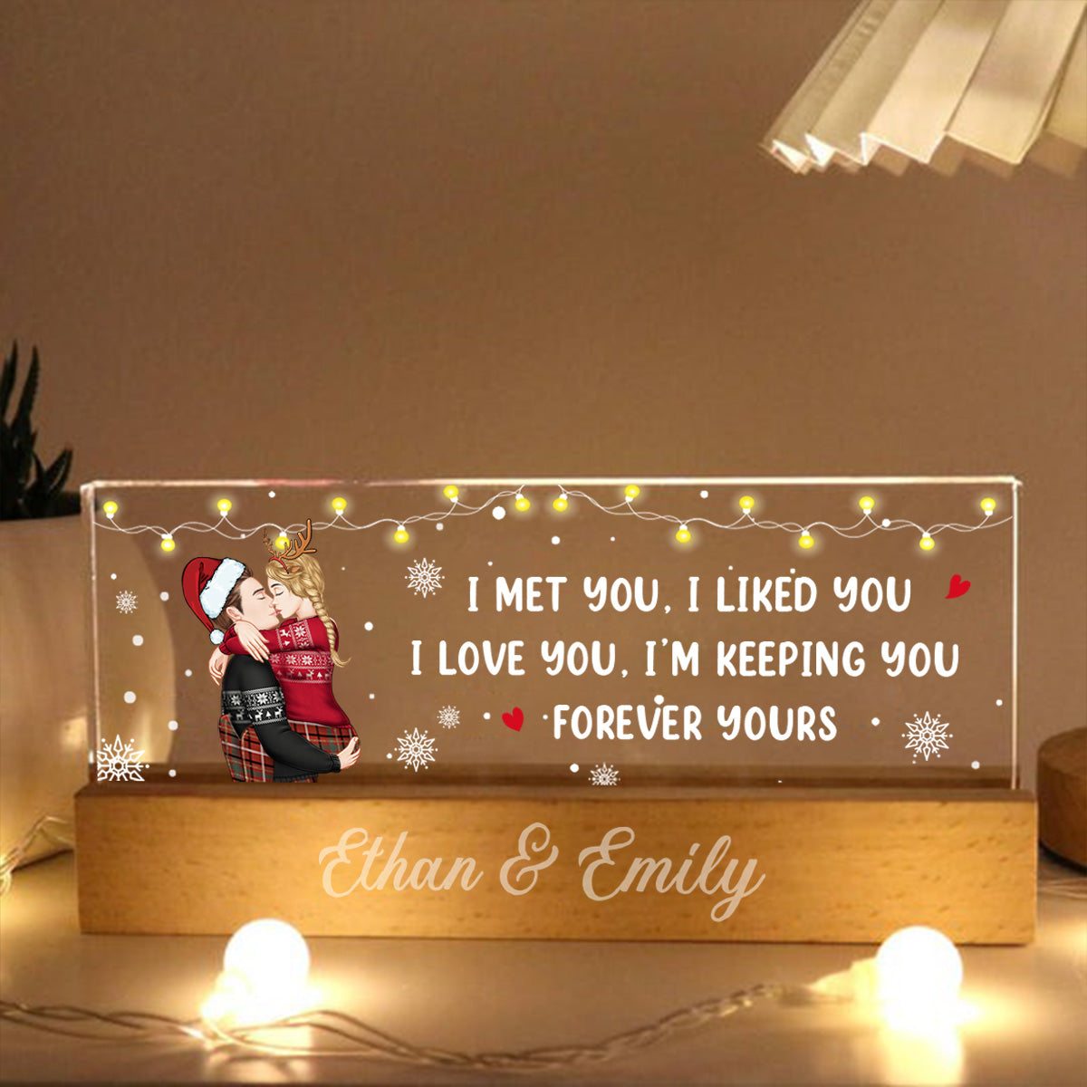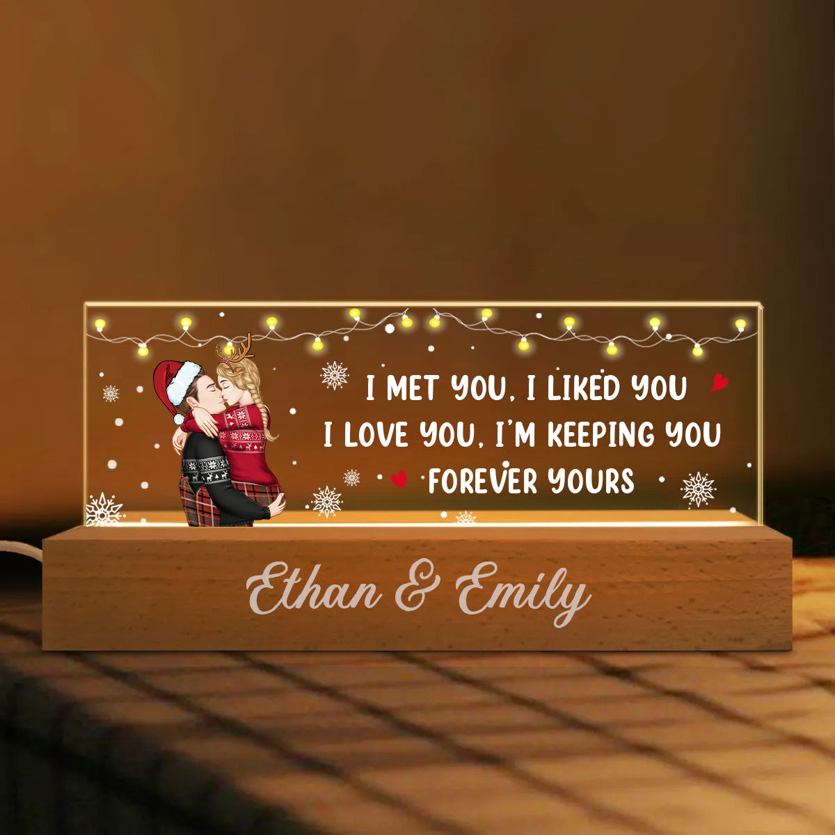 I Met You I Liked You I'm Keeping You Couple Personalized Acrylic Block LED Night Light, Christmas Gift for Him, for Her