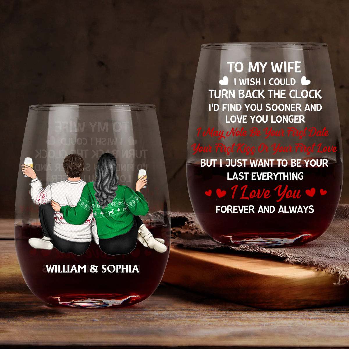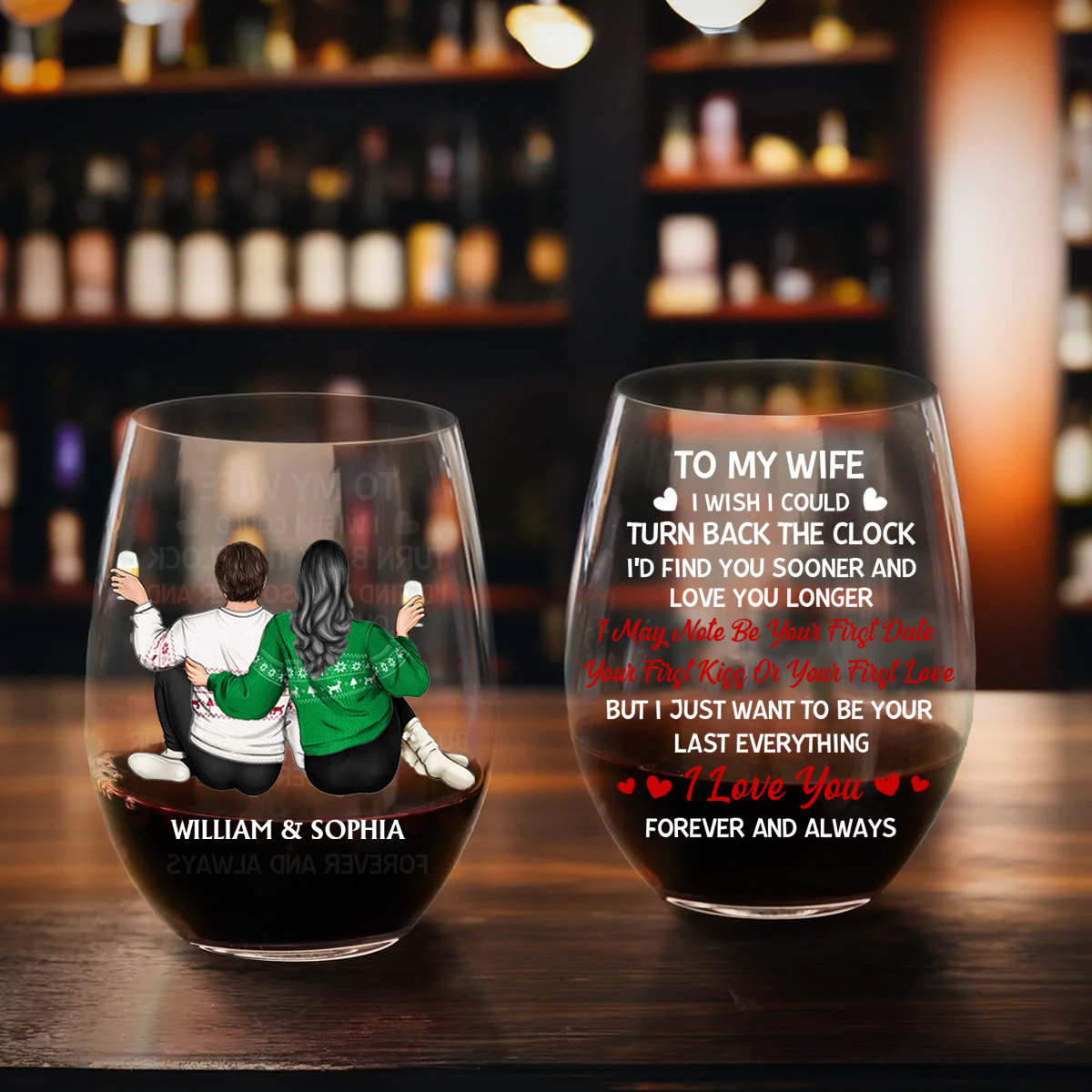 I Wish I Could Turn Back The Clock Anniversary Couple - Personalized Stemless Wine Glass