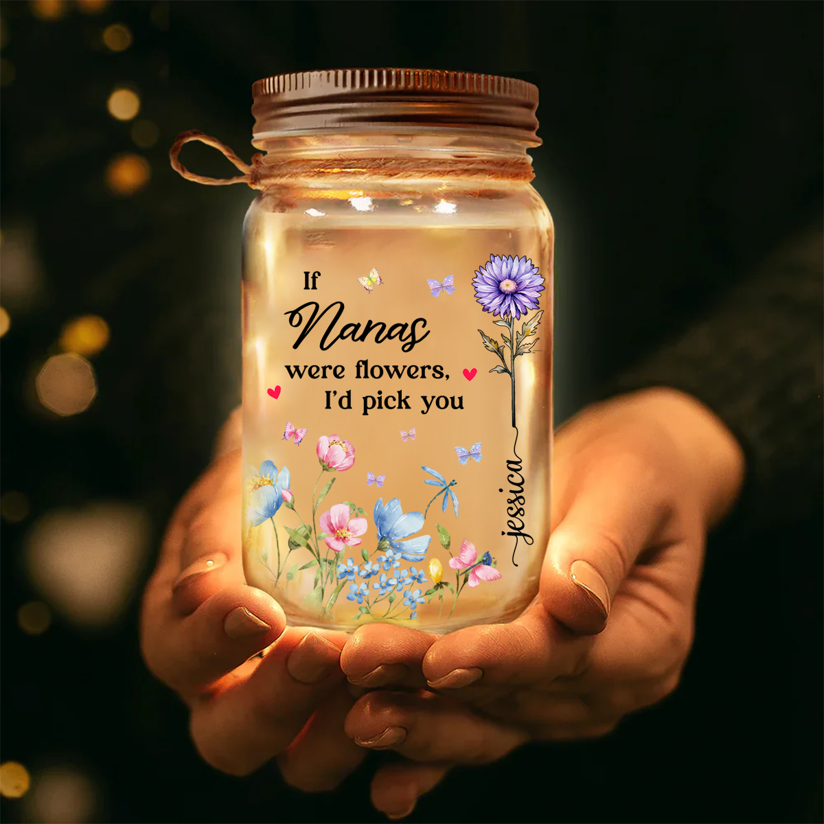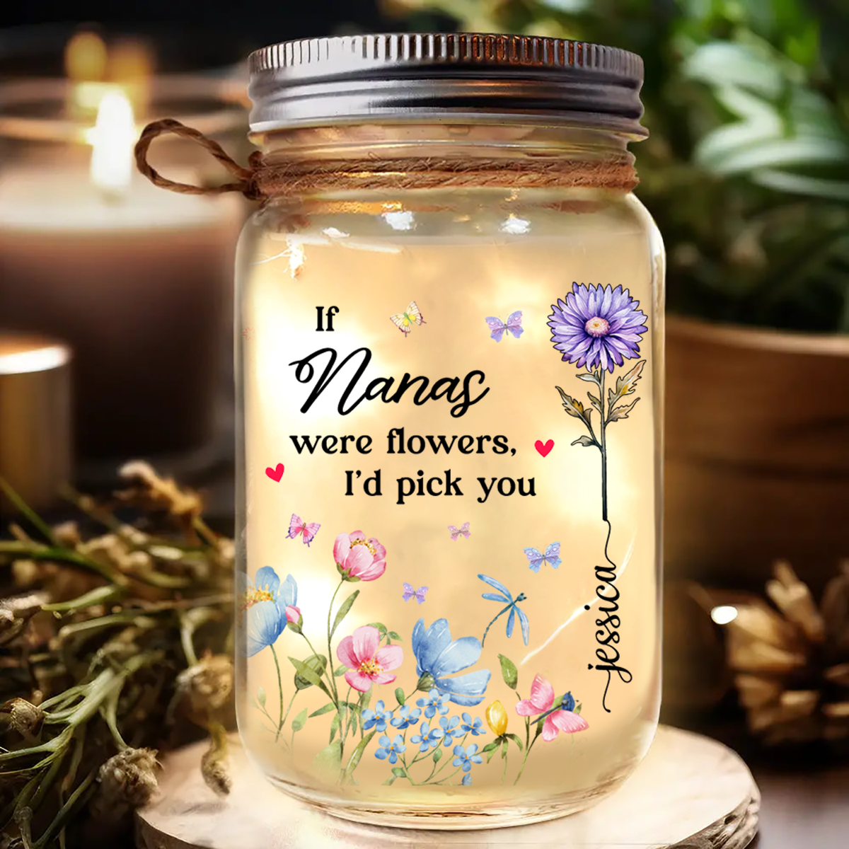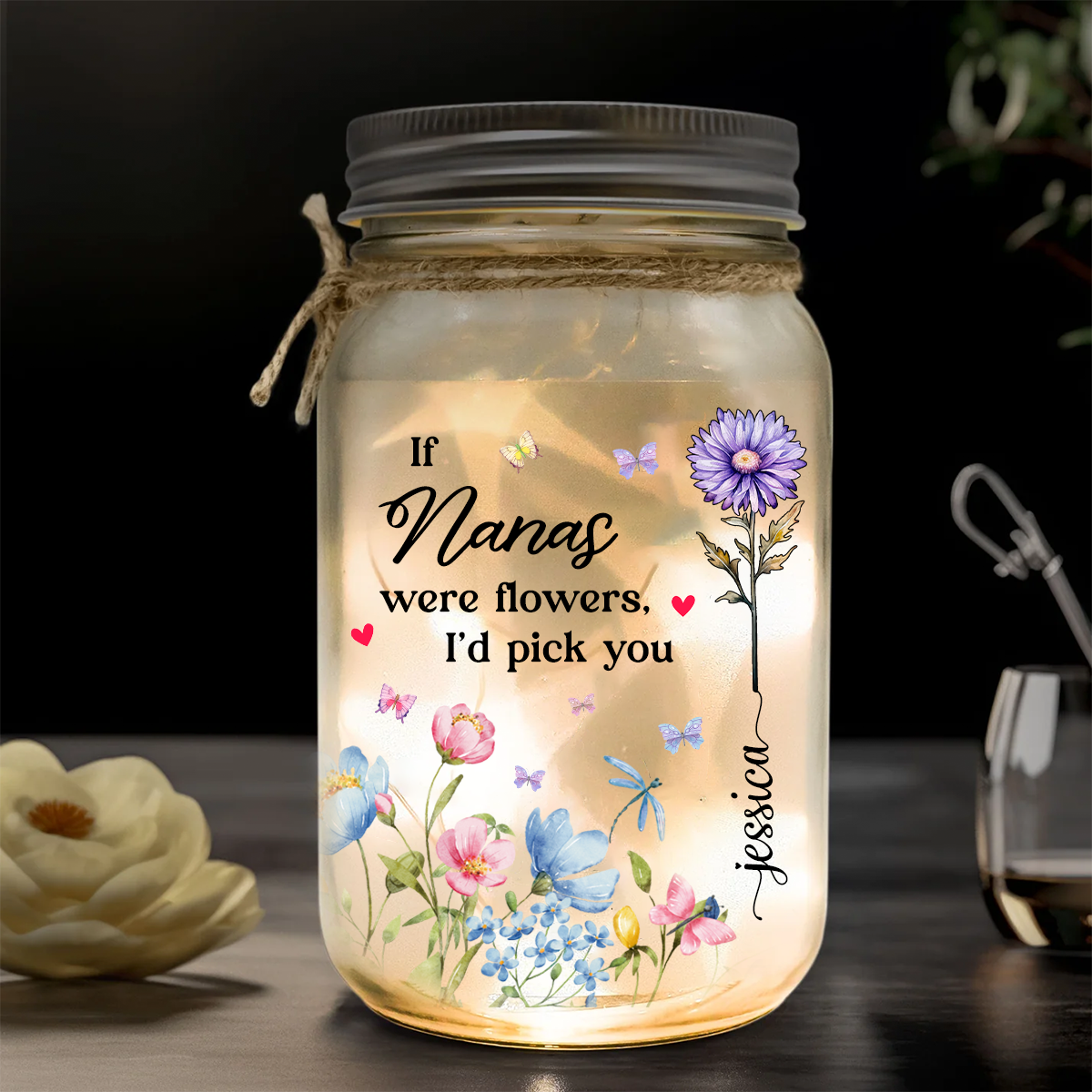 If Nanas Were Flowers I'd Pick You Birth Month Flower - Personalized Mason Jar Light