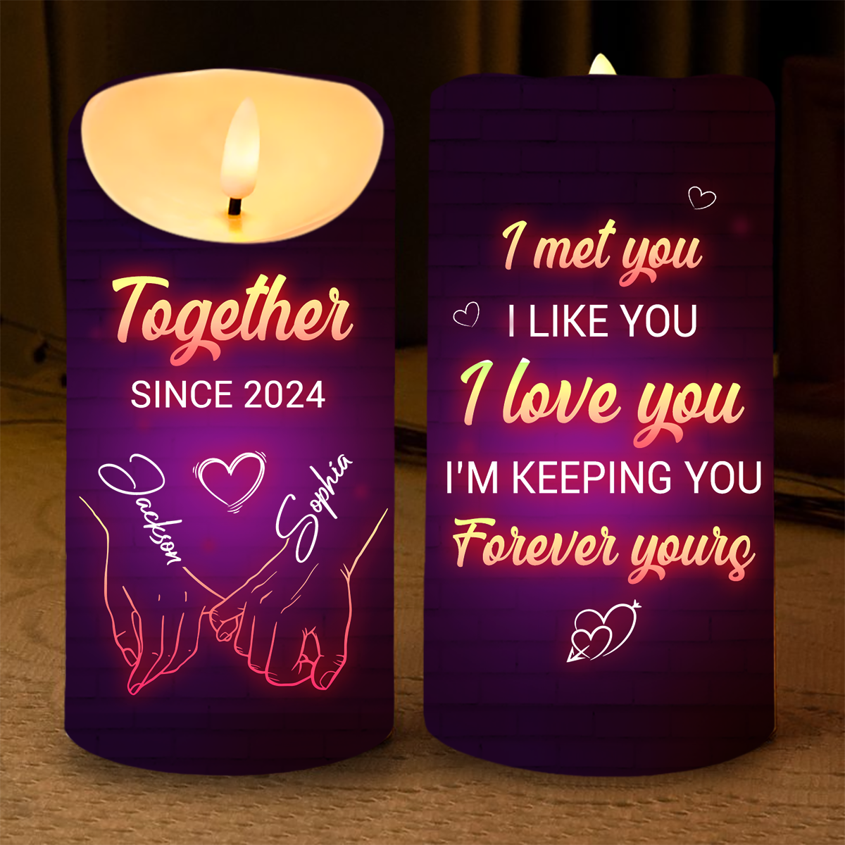 In Your Hand, I Found My Forever - Couple Personalized Custom LED Candle - Christmas Gift For Husband Wife, Anniversary