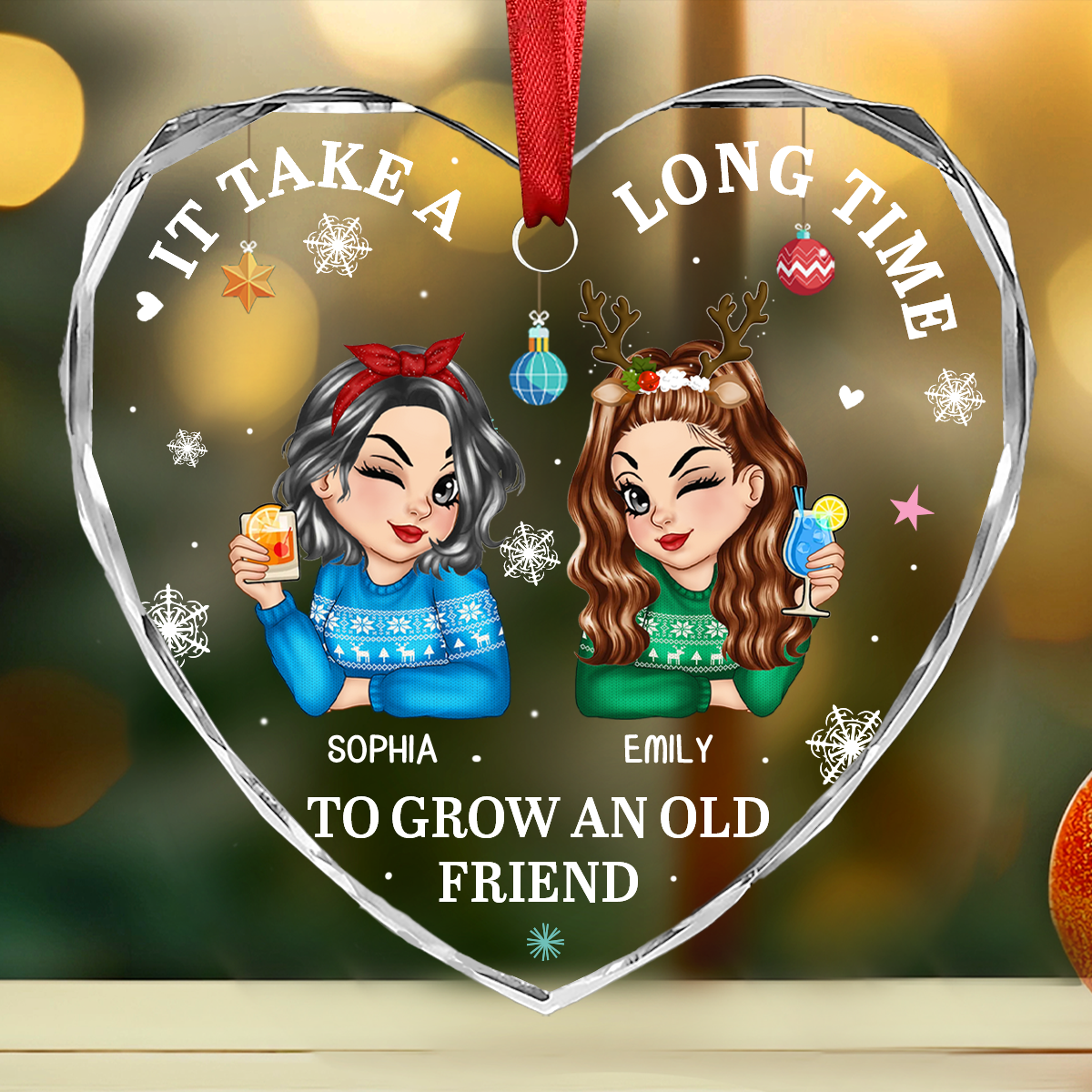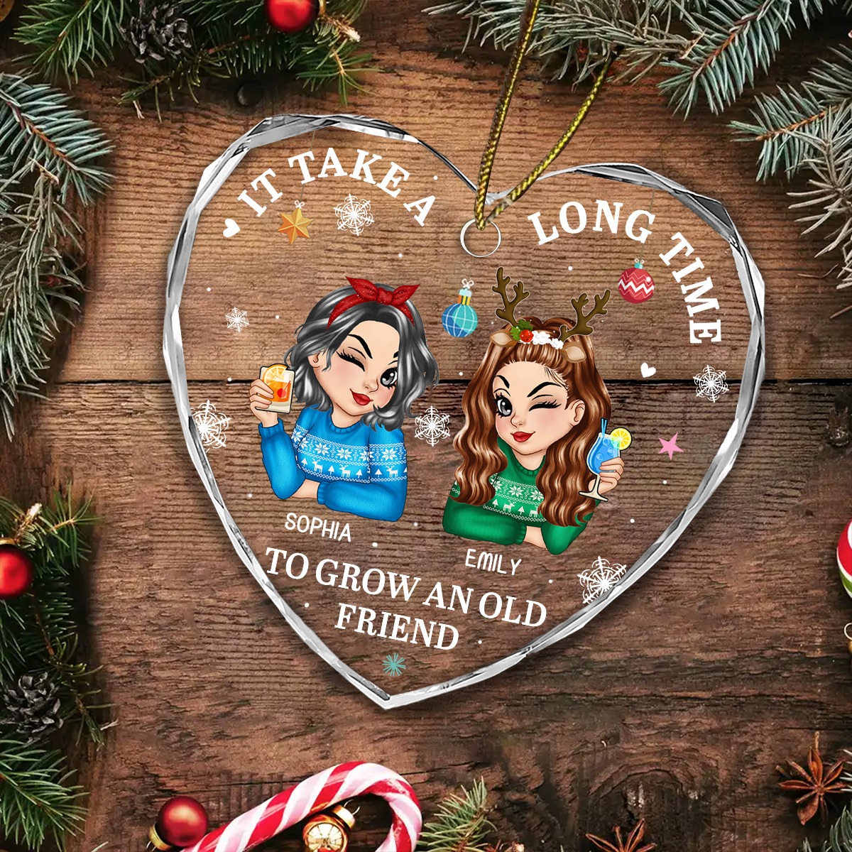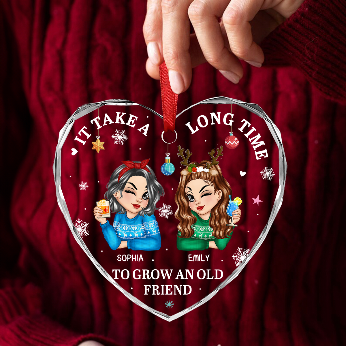 It Takes A Long Time To Grow An Old Friend Christmas - Personalized Heart Shaped Acrylic Ornament