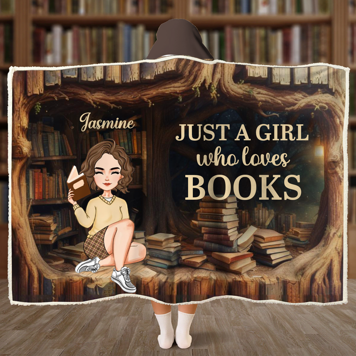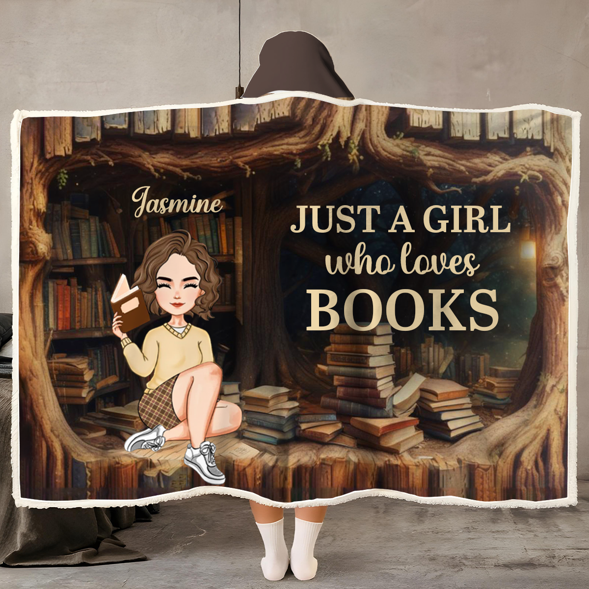 Just A Girl Who Loves Books Library - Personalized Wearable Hooded Blanket