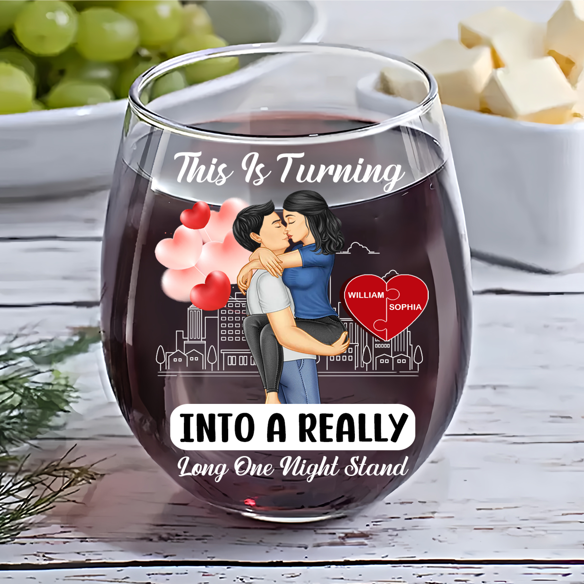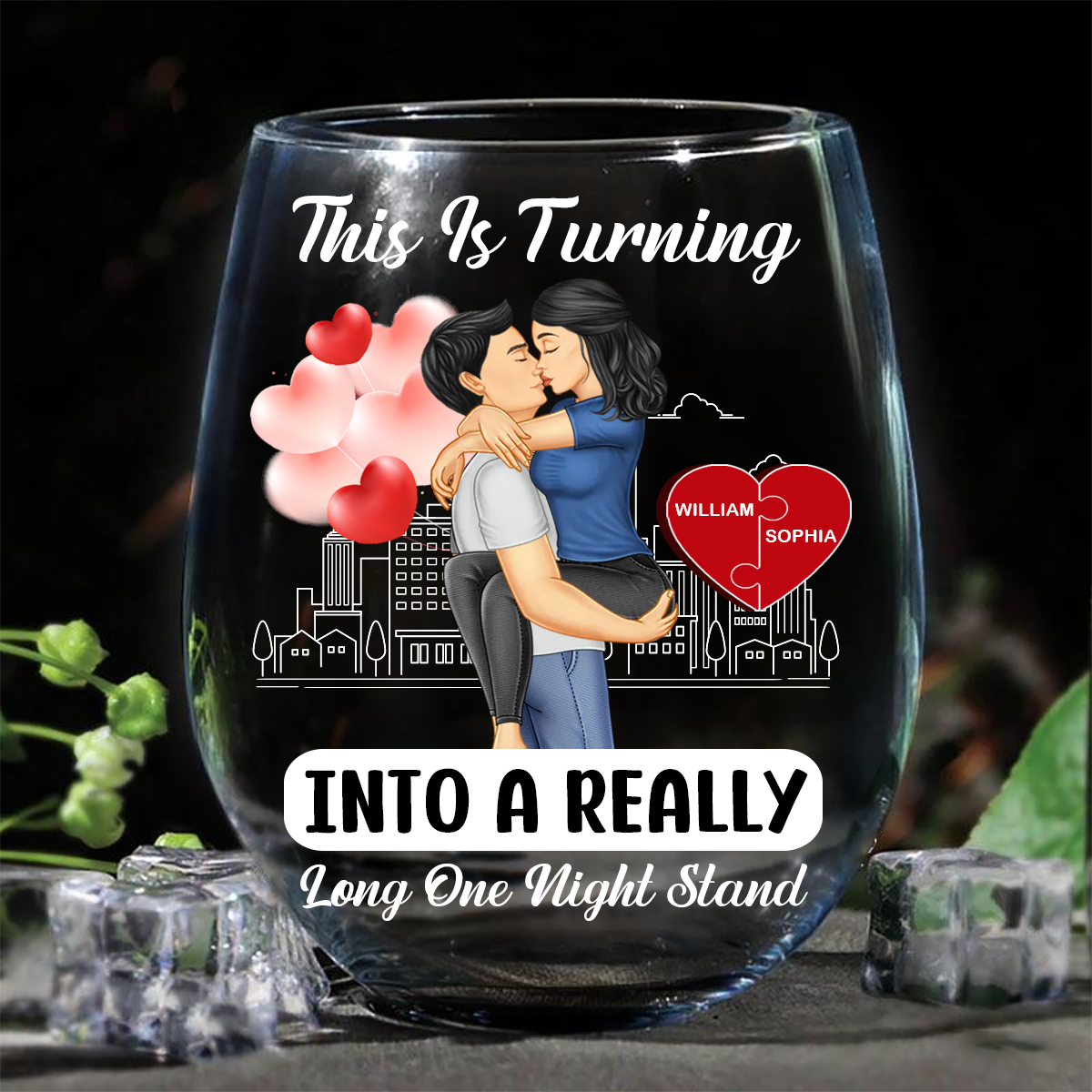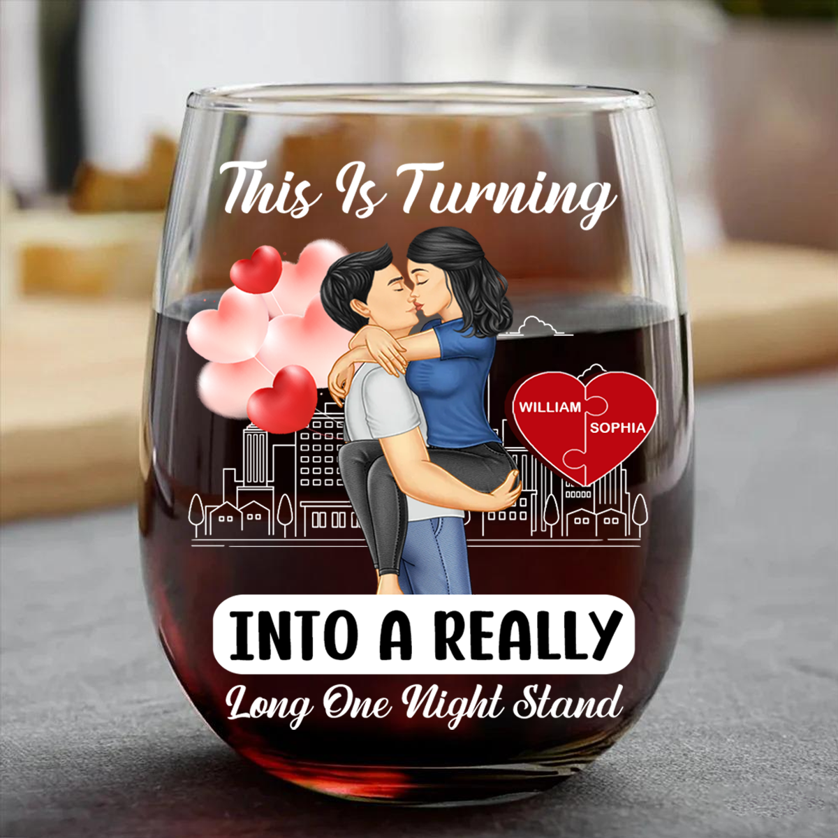 Kissing Couple Into A Really Long One Night Stand - Personalized Stemless Wine Glass