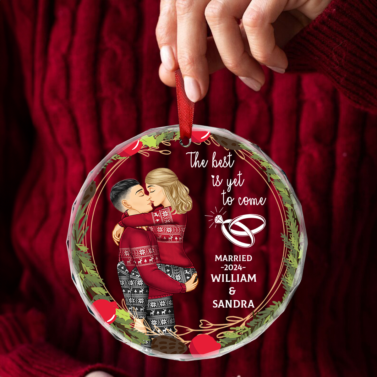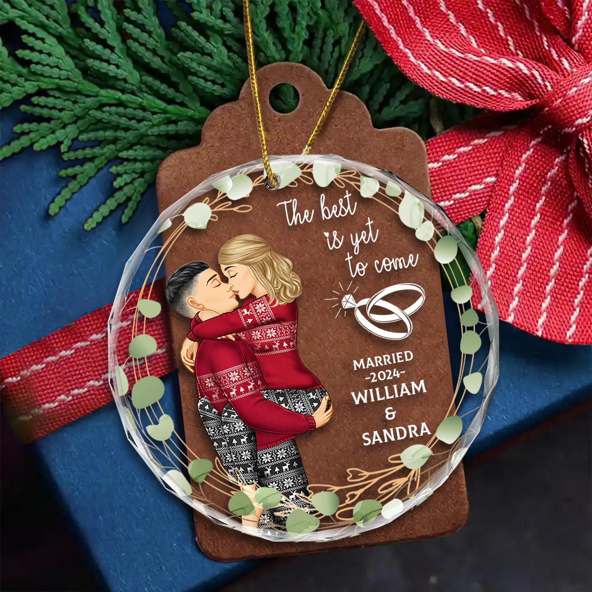 Kissing Couple Newly Engaged The Best Is Yet To Come - Personalized Acrylic Ornament