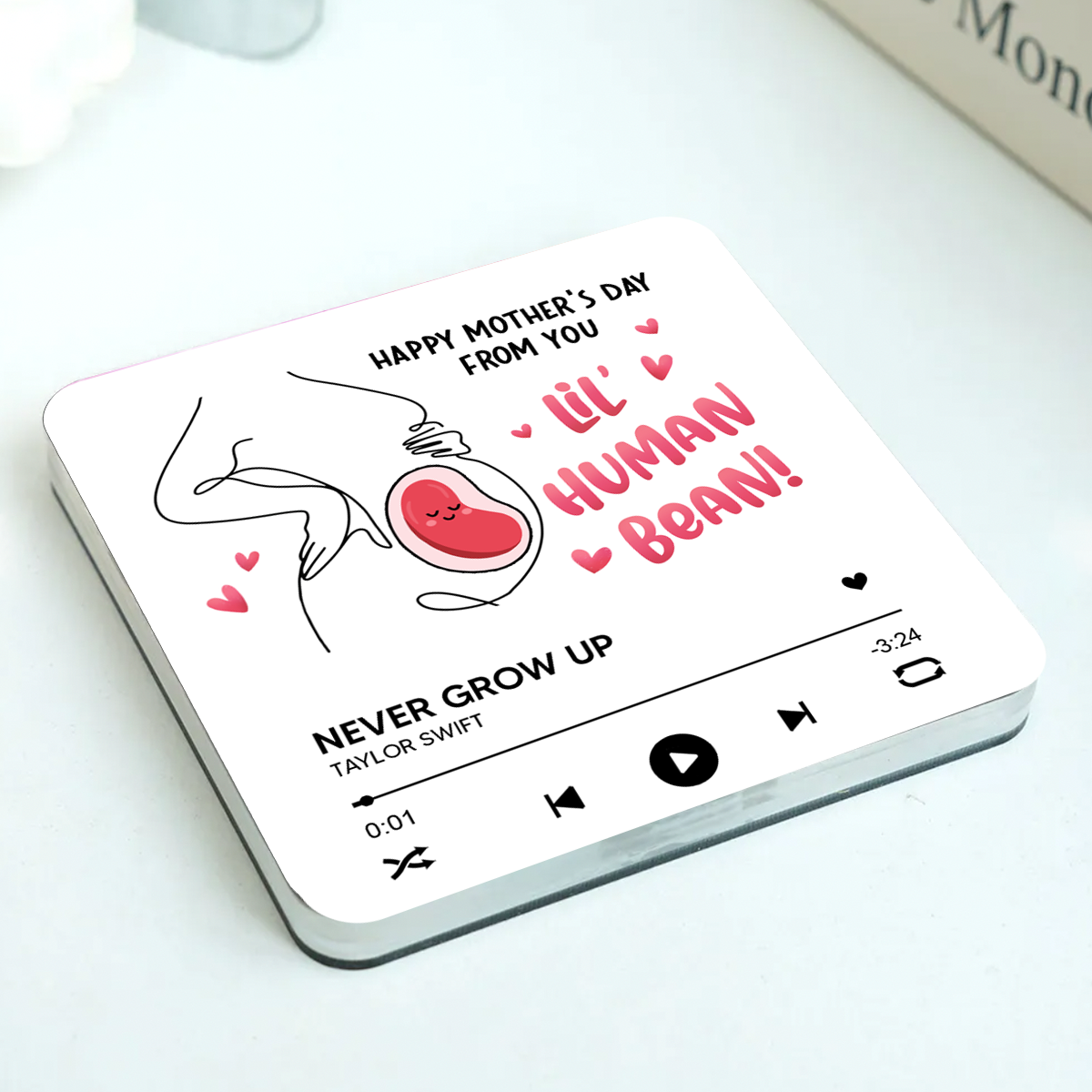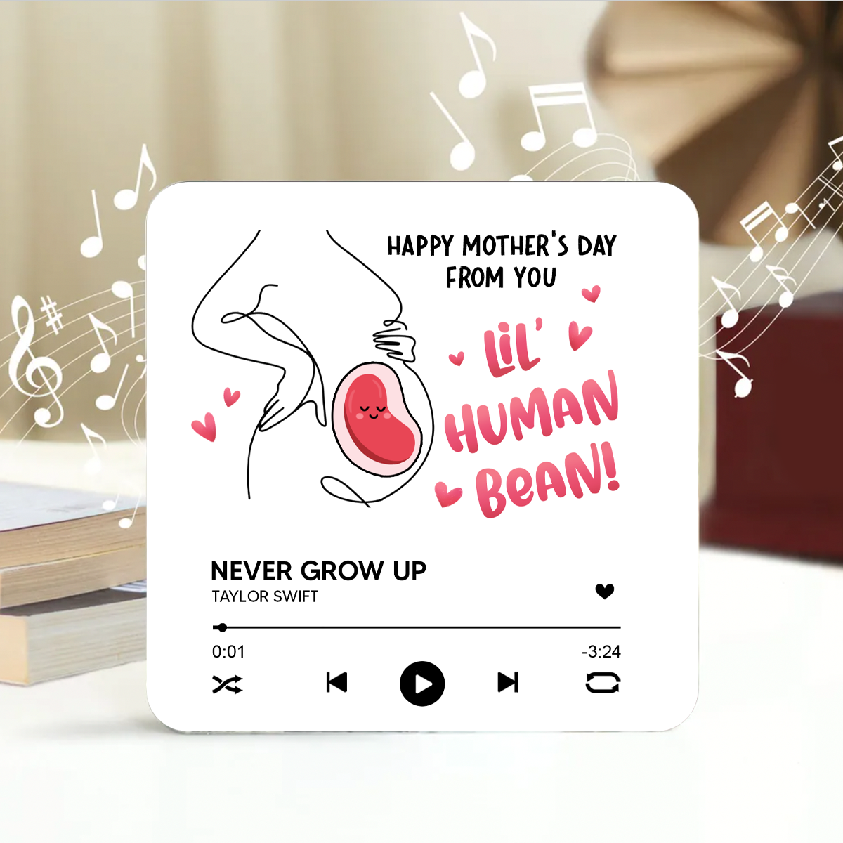 Lil Human Bean Personalized Music Fridge Magnet, Perfect Mother's Day Gift For Pregnant Wife, Custom Favorite Song As Messages