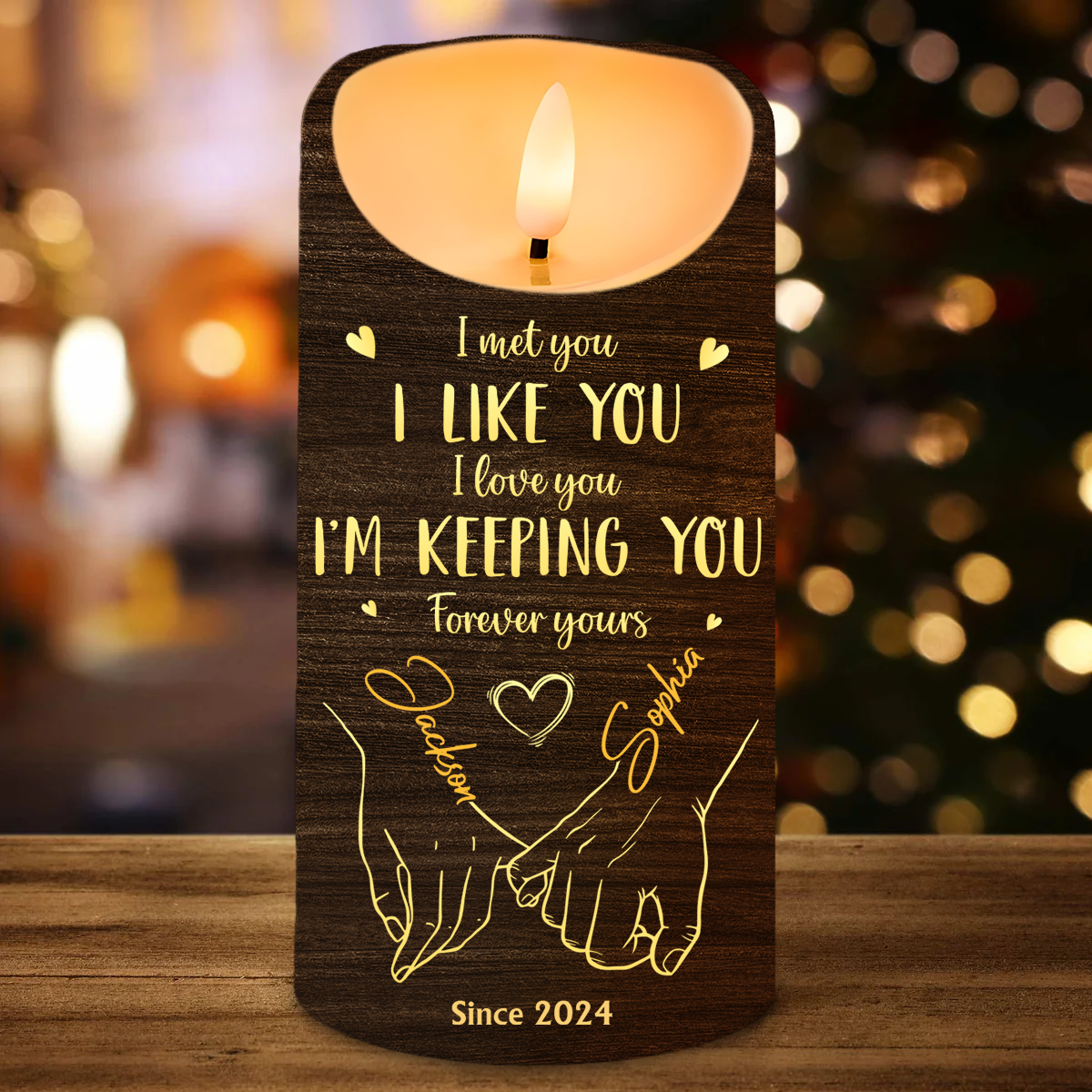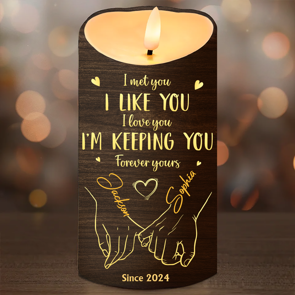 Love Is A Flame That Never Goes Out - Couple Personalized Custom LED Candle - Christmas Gift For Husband Wife, Anniversary
