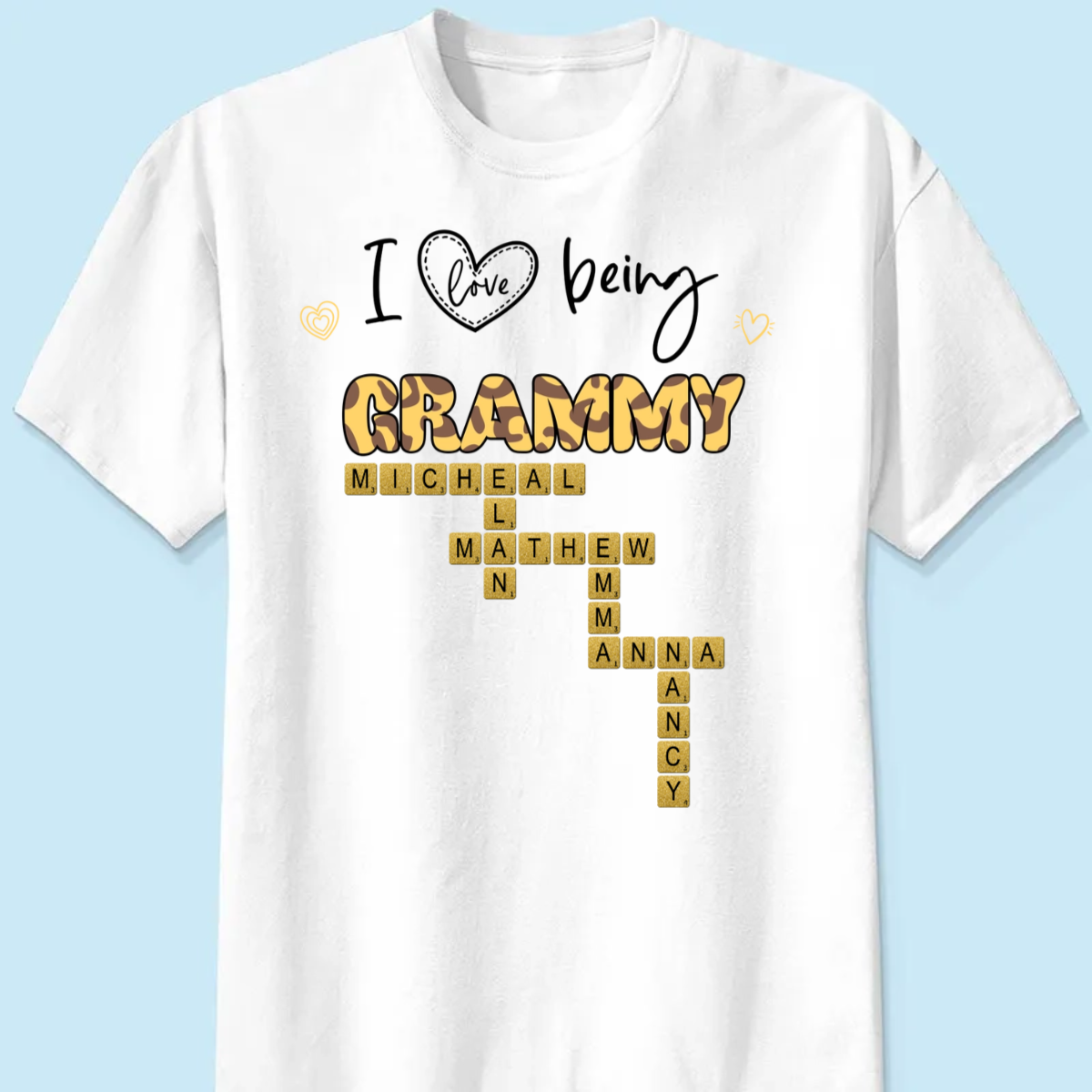 Loving Being A Grandma Leopard Heart acCrossword Puzzle Personalized Shirt