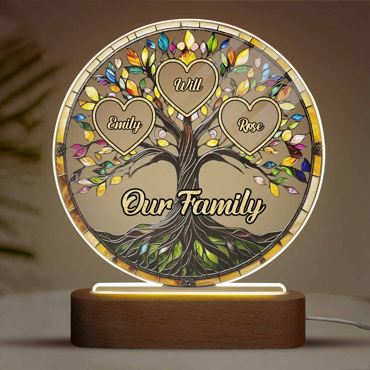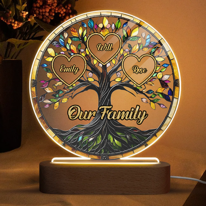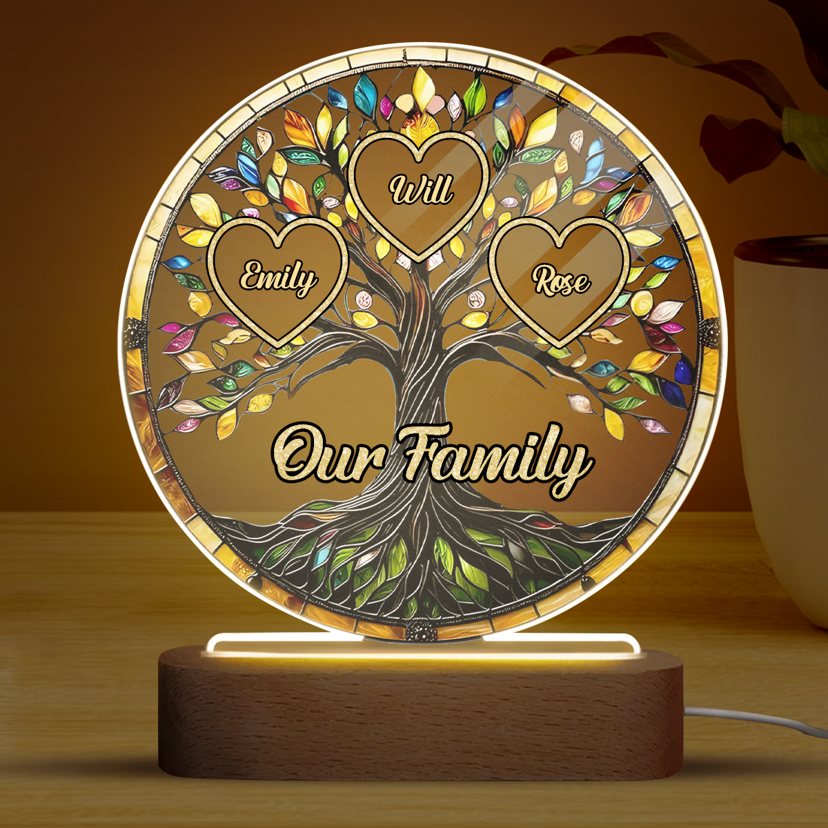 Loving Family Tree Unbreakable Bond - Personalized 3D Led Light Wooden Base
