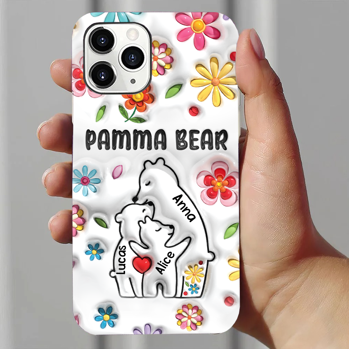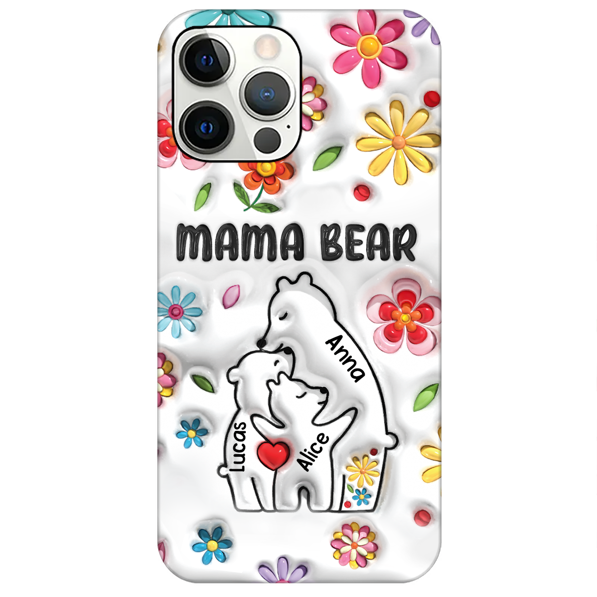 Mama Bear Floral Style - Birthday, Loving Gift For Mom, Mother, Grandma, Grandmother - 3D Inflated Effect Printed, Personalized Clear Phone Case