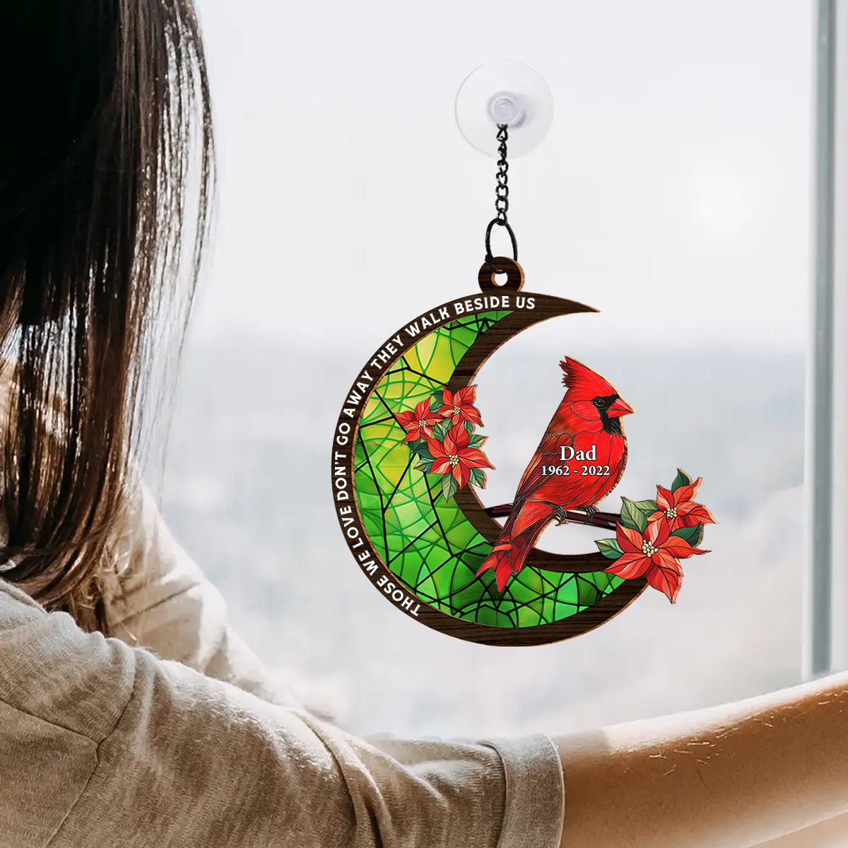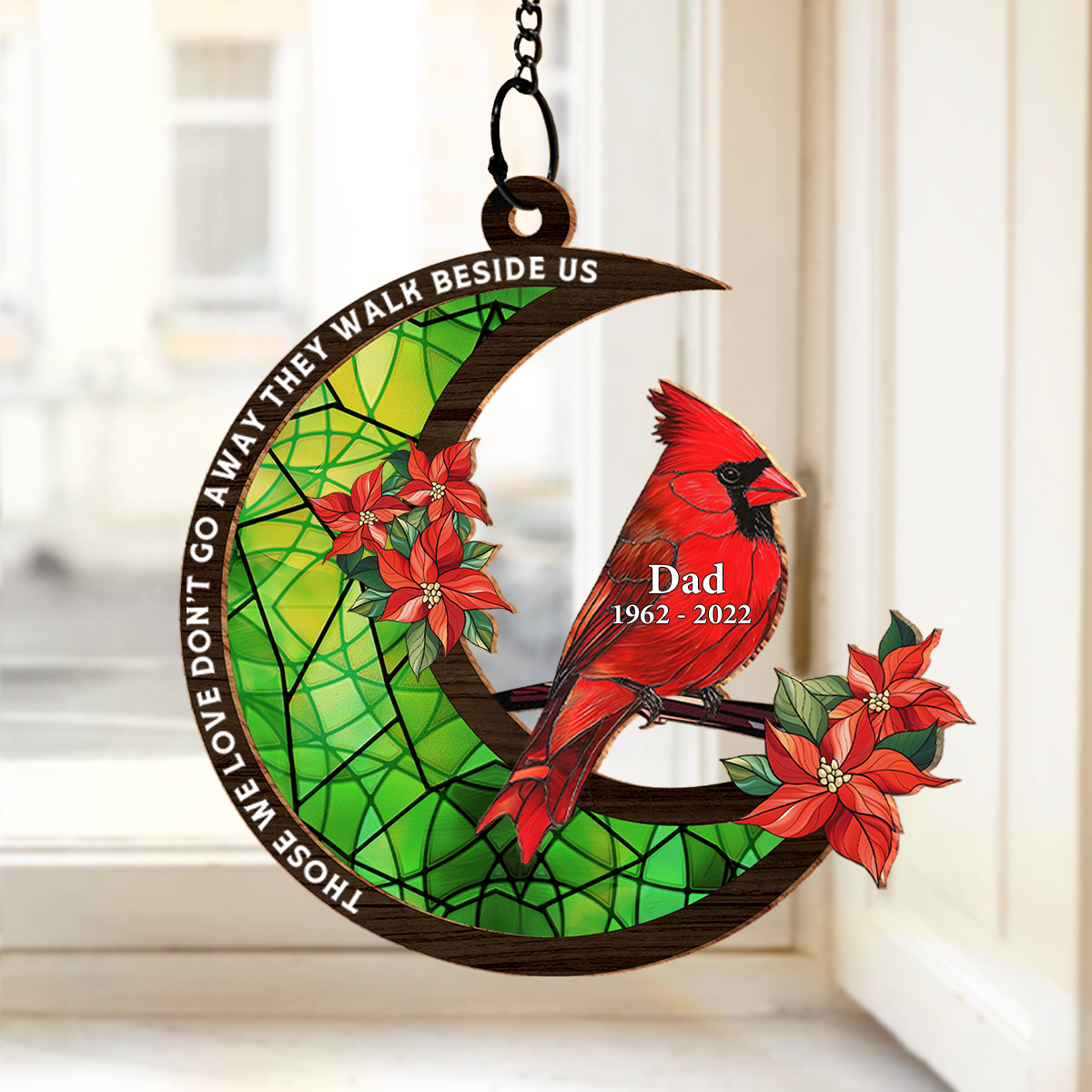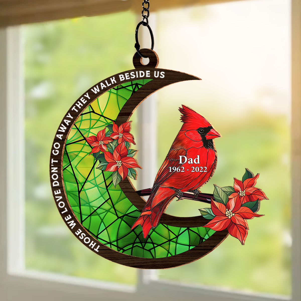 Memorial Cardinal Stained Glass Moon - Personalized Window Hanging Suncatcher Ornament