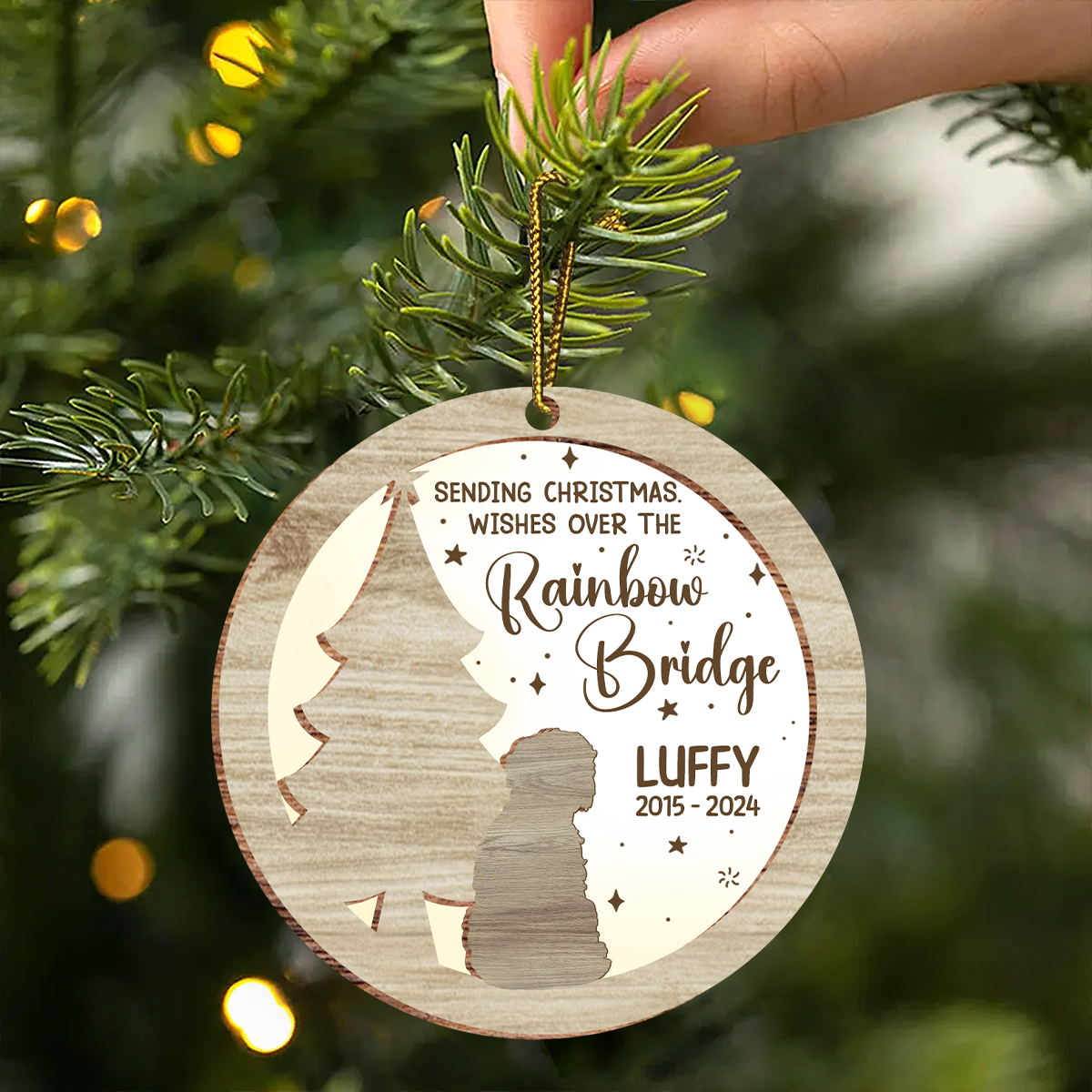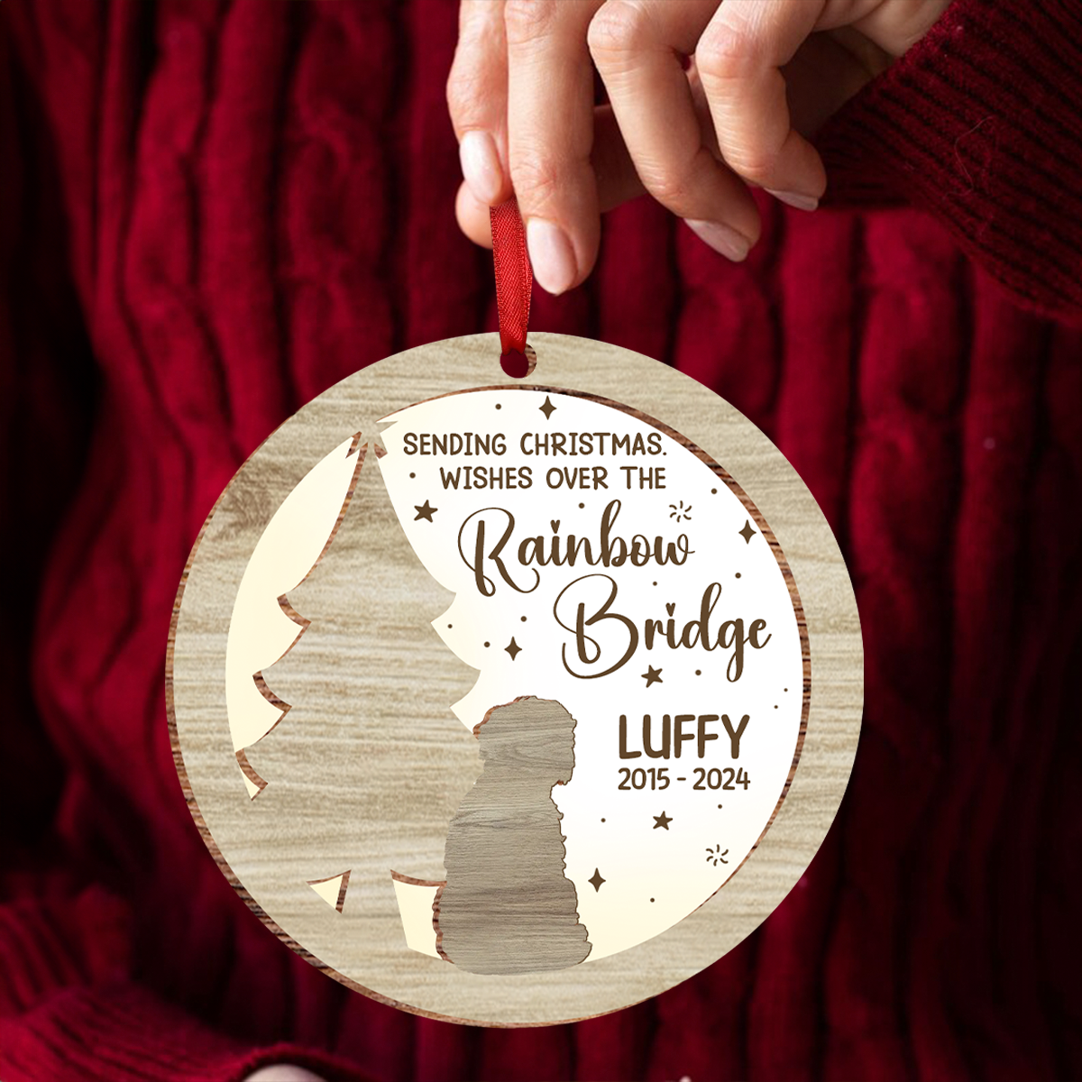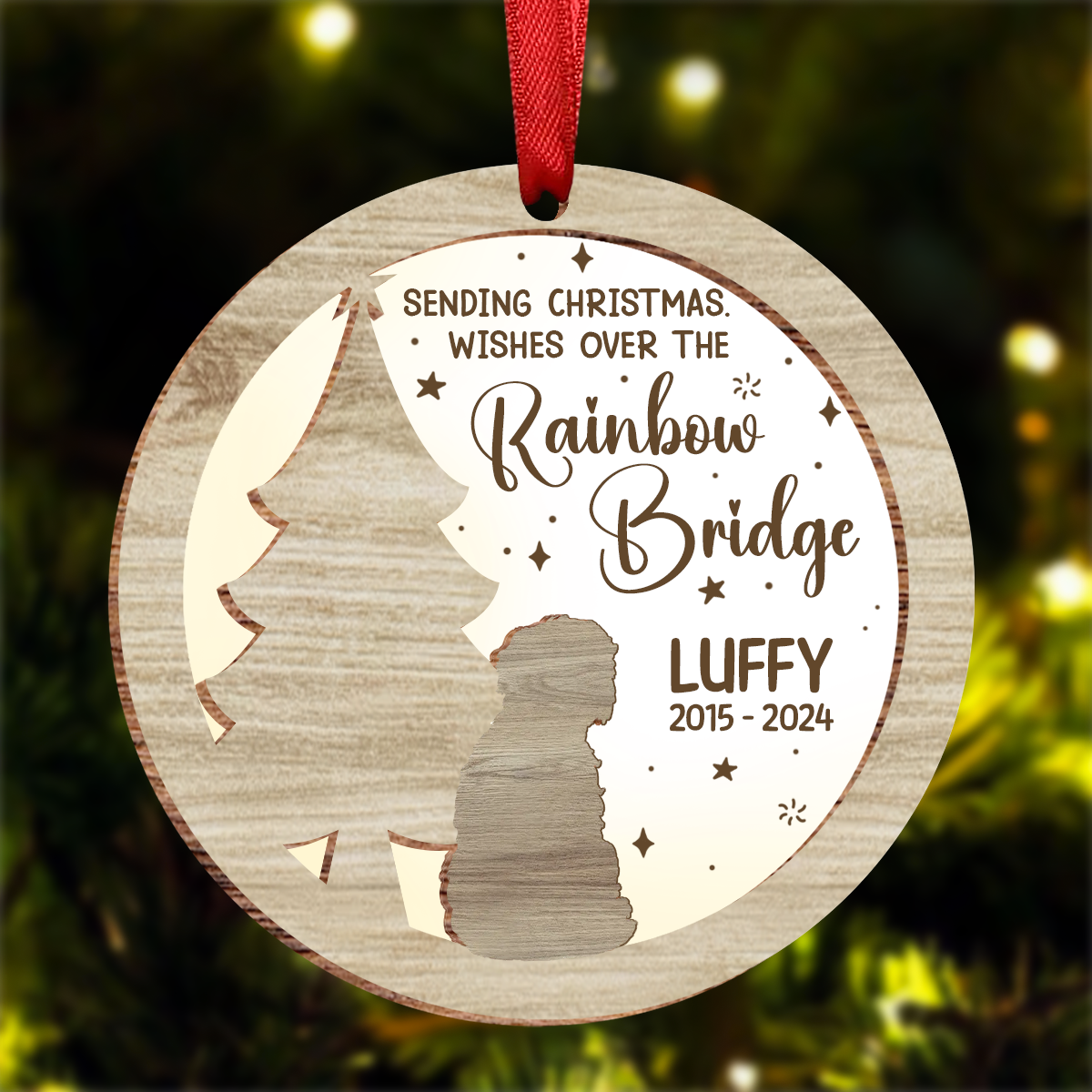Memorial Dog Sending Christmas Wishes Over The Rainbow Bridge - Personalized Ornament