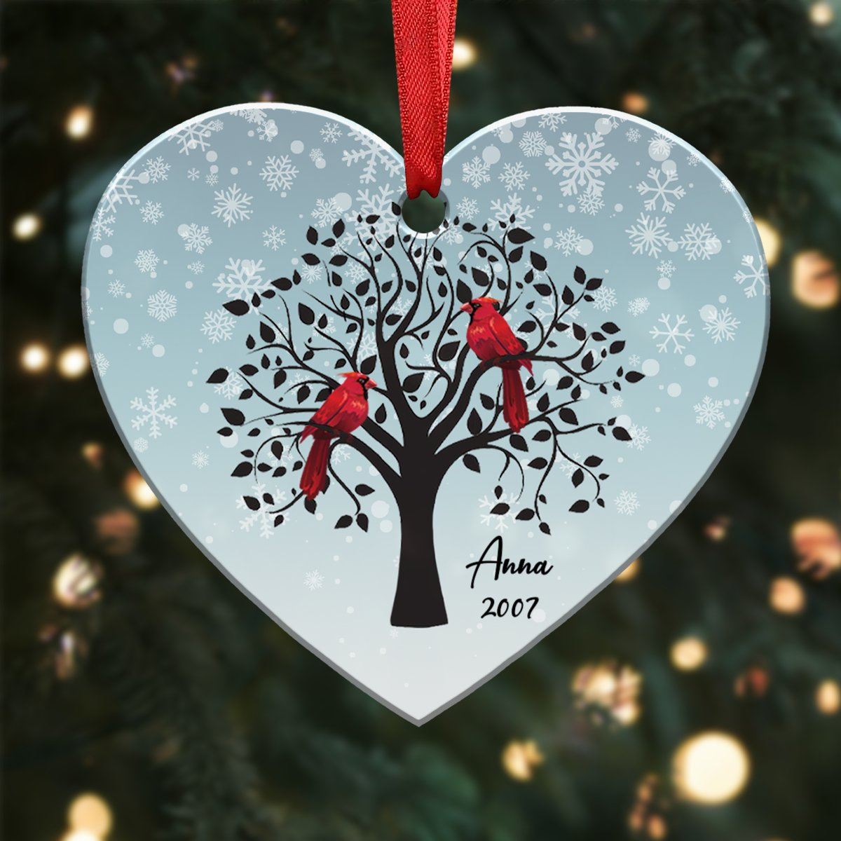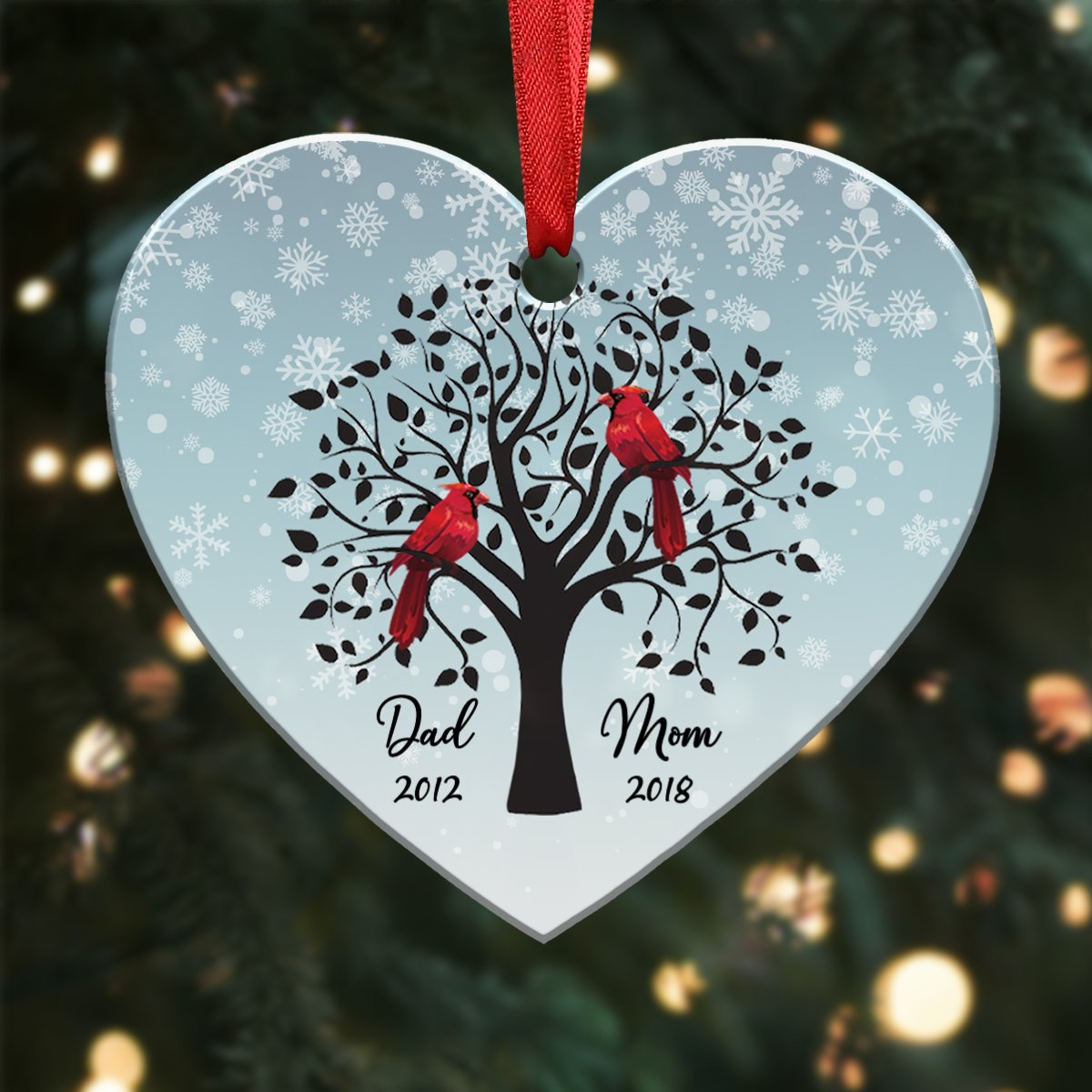 Memorial Gift - Dad And Mom Cardinal Memorial Personalized Heart Ornament
