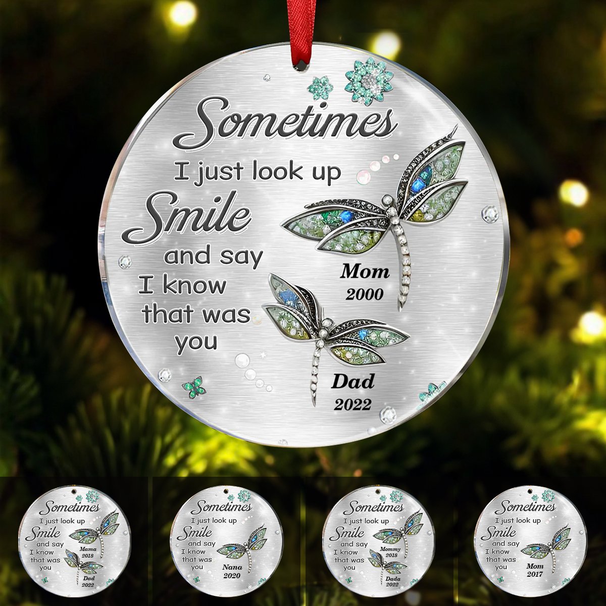 Memorial - Sometimes I Just Look Up Smile Memory Dragonfly - Personalized Circle Ornament