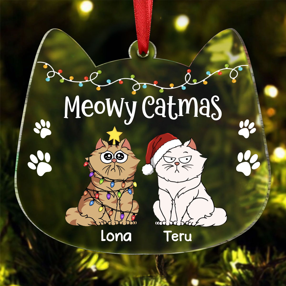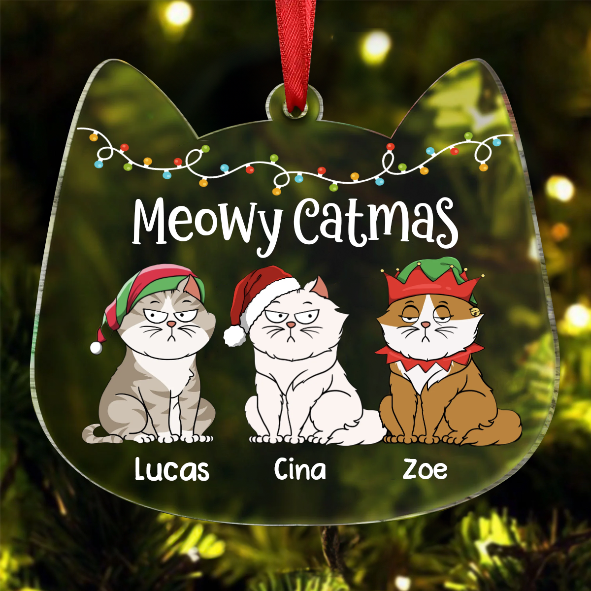 Meowy Catmas Funny Cartoon Cats - Christmas Gift For Cat Lovers - Personalized Custom Shaped Acrylic Ornament