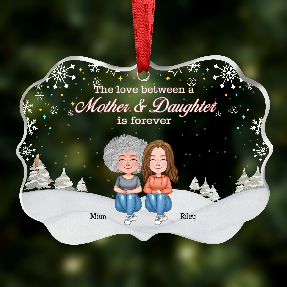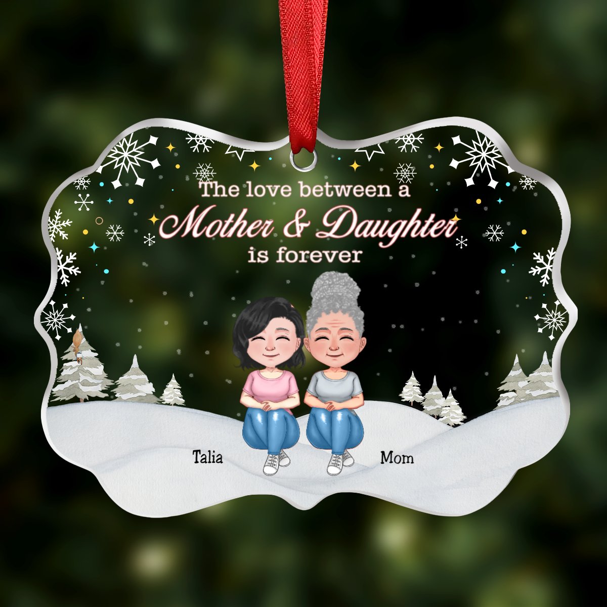 Mother & Daughter - The Love Between Mother And Daughter Is Forever - Personalized Transparent Ornament (Ver 2)