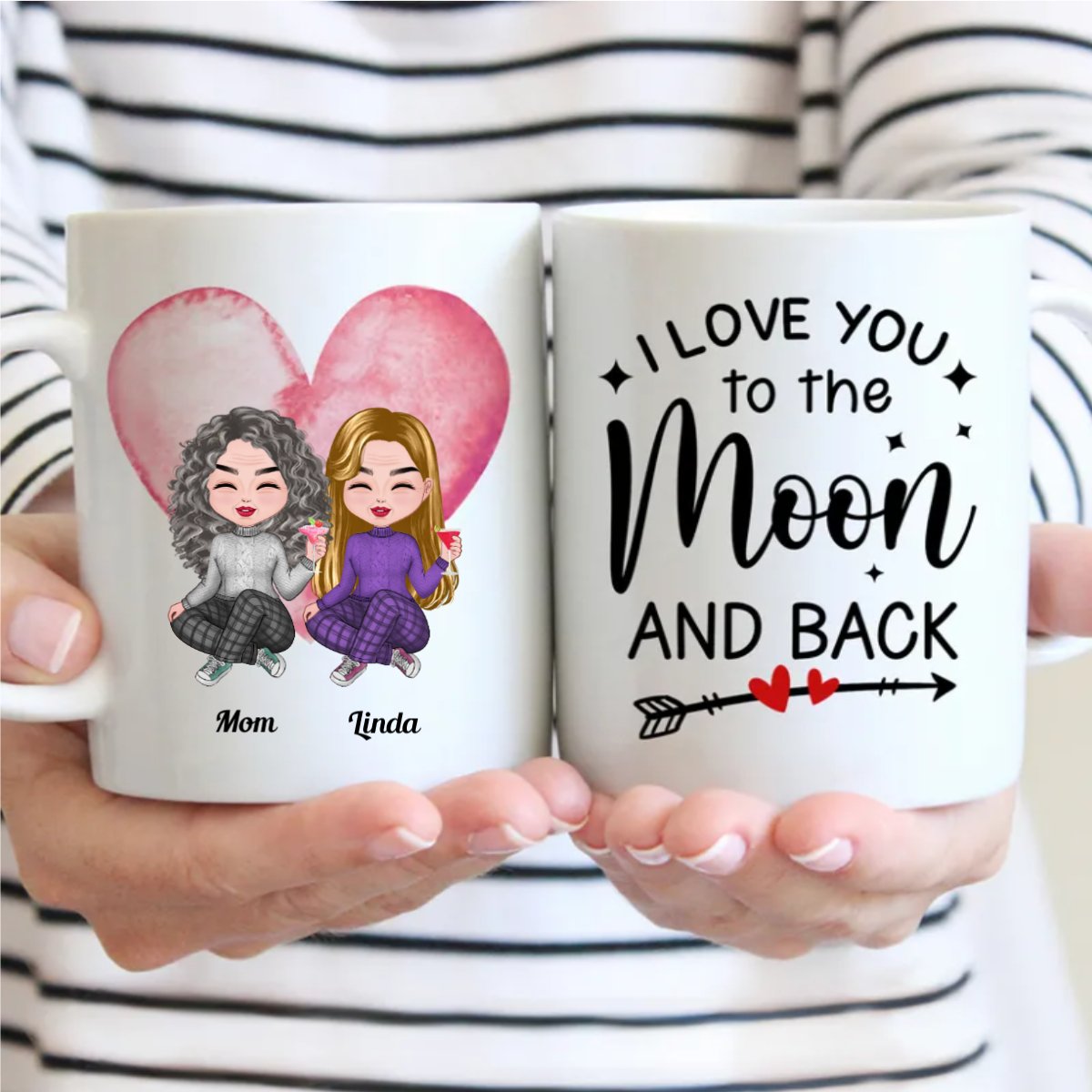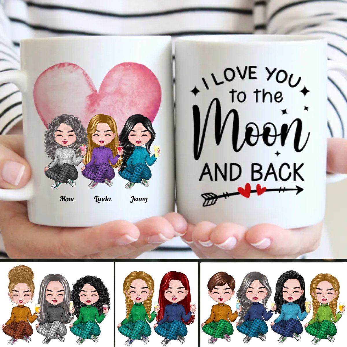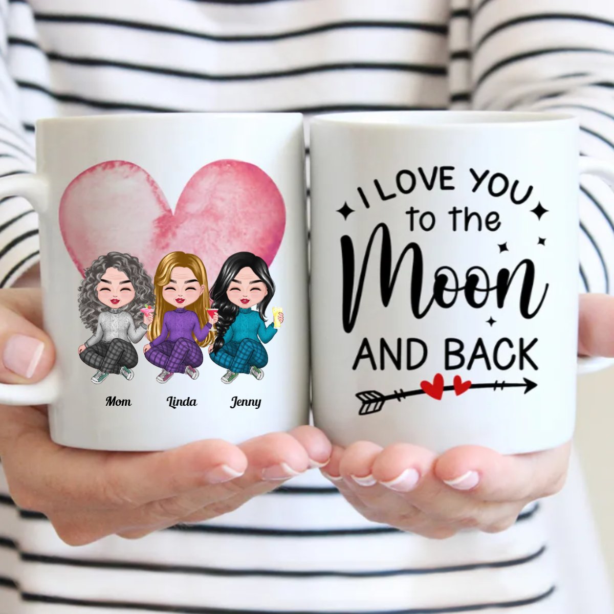 Mother & Daughters - I Love You To The Moon And Back - Personalized Mug