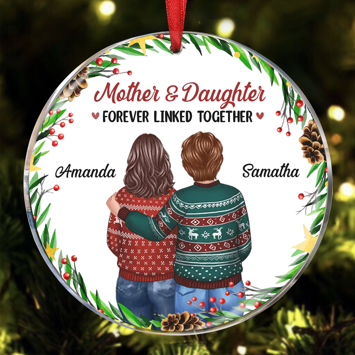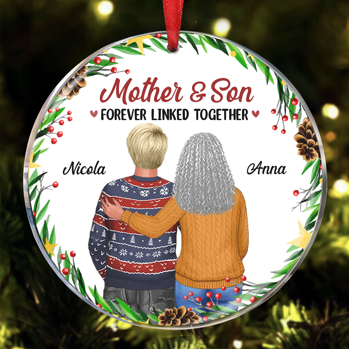 Mother Father And Daughter Son Holly Branch Personalized Circle Ornament