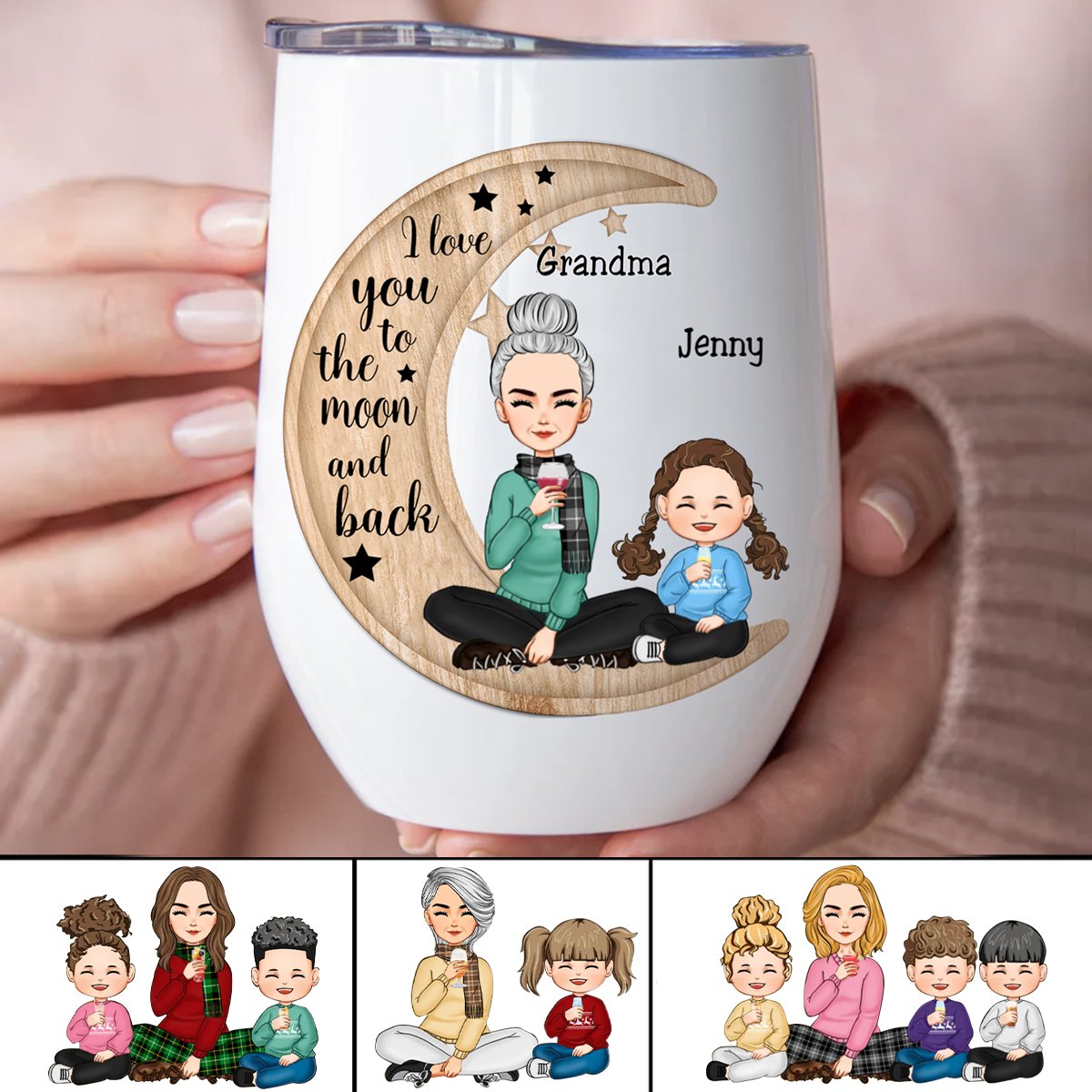 Mother - I Love You To The Moon And Back - Personalized Wine Tumbler (II1)