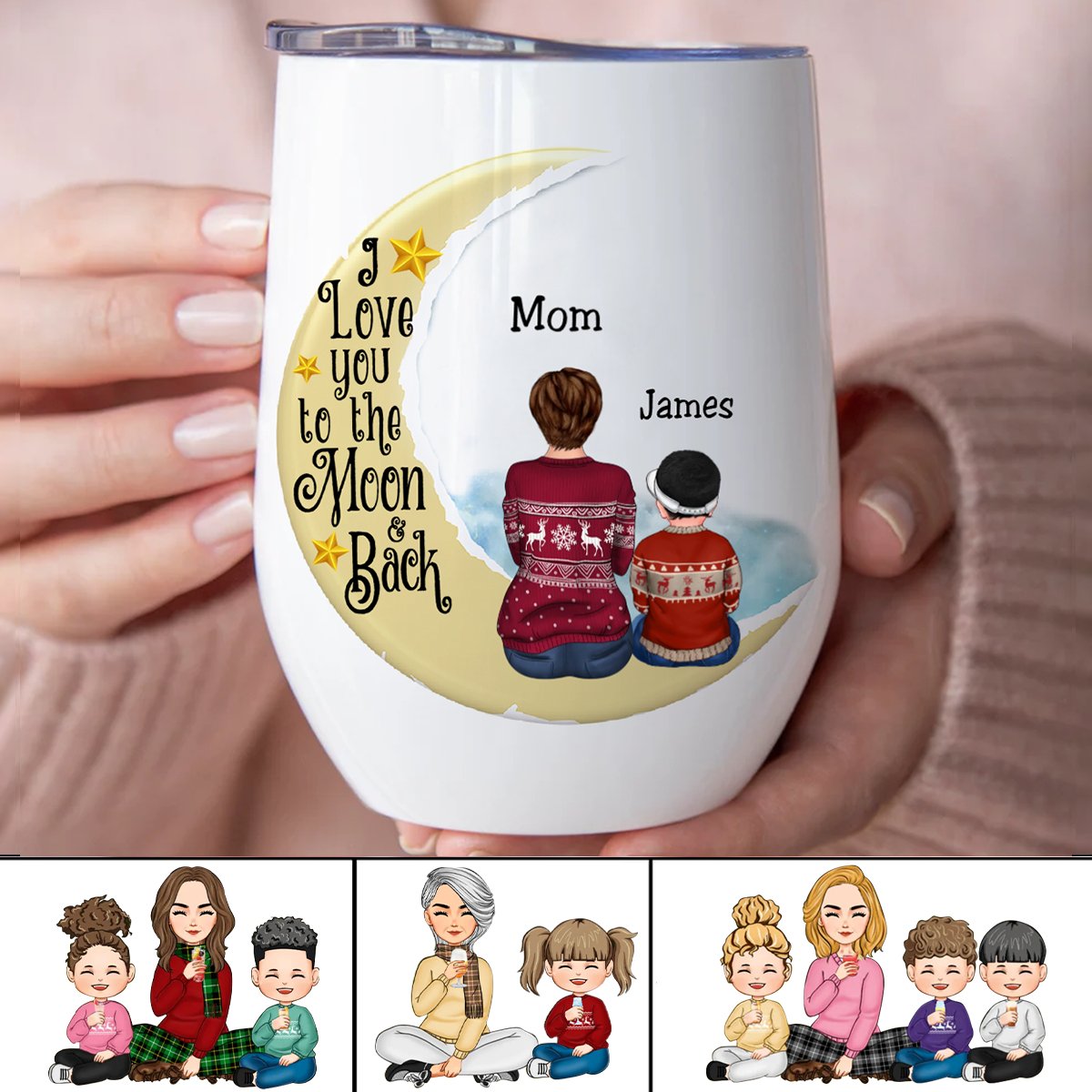 Mother - I Love You To The Moon And Back - Personalized Wine Tumbler (M10)
